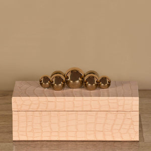 Protect your treasures with both style and security using this sophisticated jewelry box. Designed in a versatile shade of cream in a snakeskin design, this elegant jewelry box boasts a distinctive gold-finished knob that serves as a unique handle for effortlessly opening and closing it.