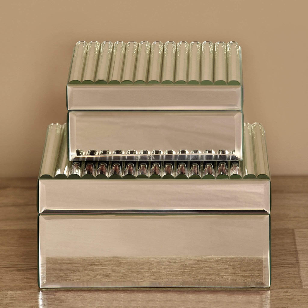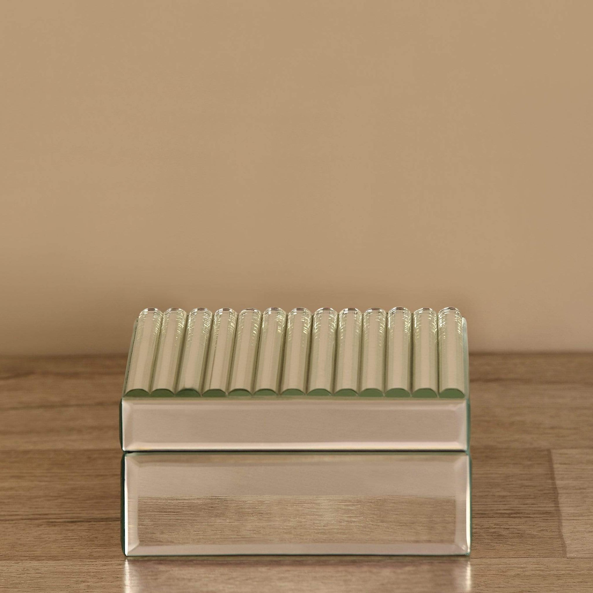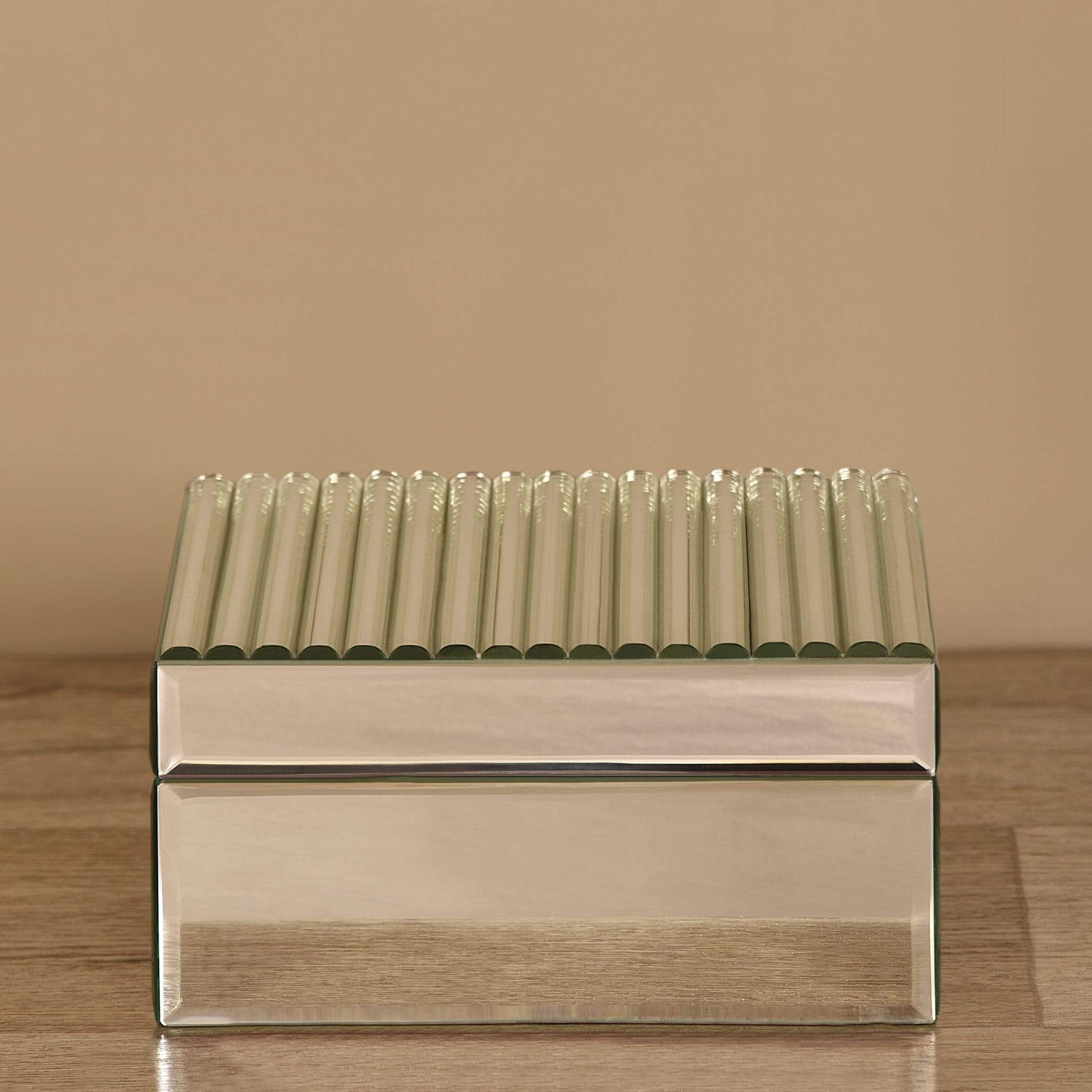 Ideal for gracing a prominent spot in your living area or bedroom, this charming jewelry box boasts a unique half-moon dowel top. Its exquisite design is further enhanced by a shining silver finish, adding an extra touch of luxury that complements any interior decor style.