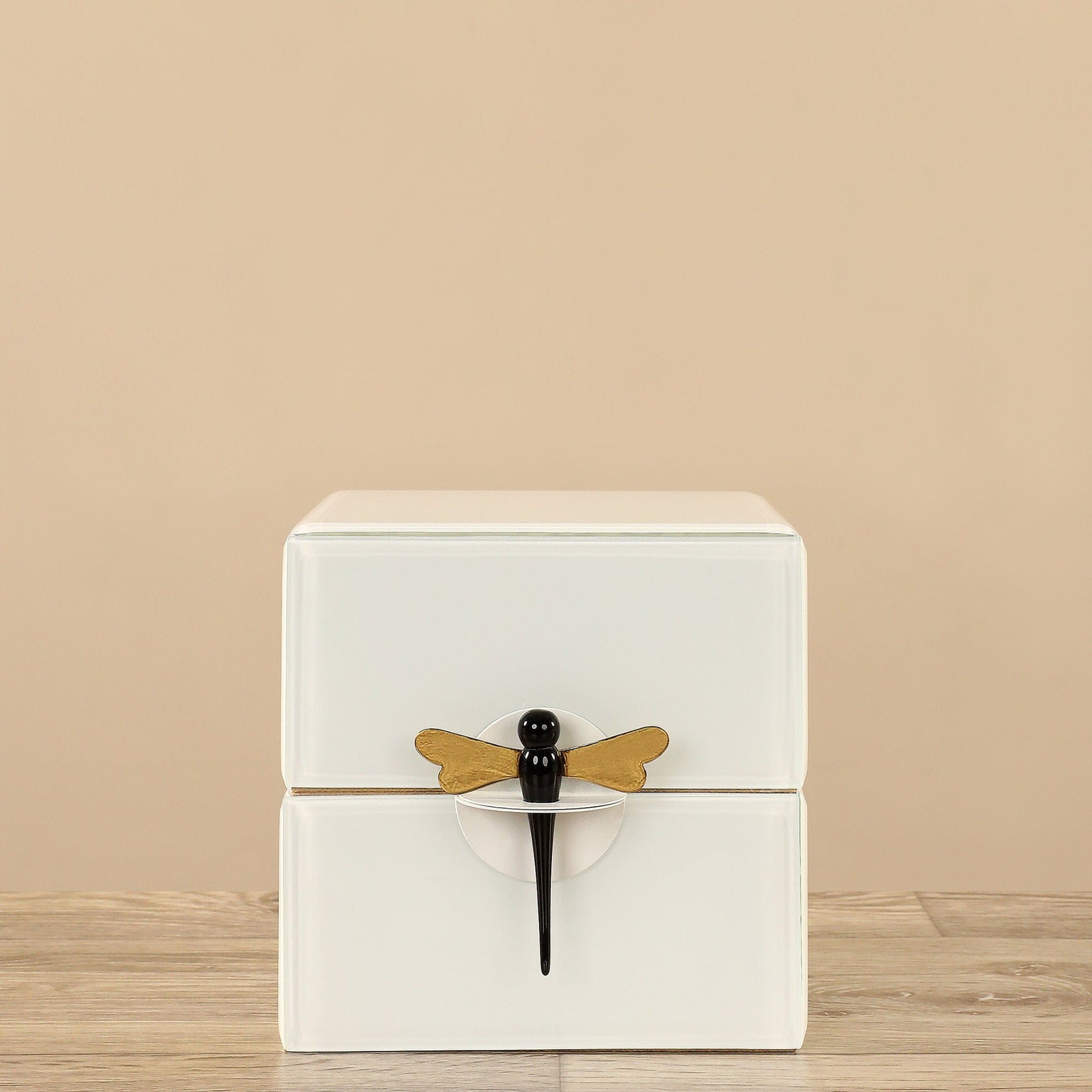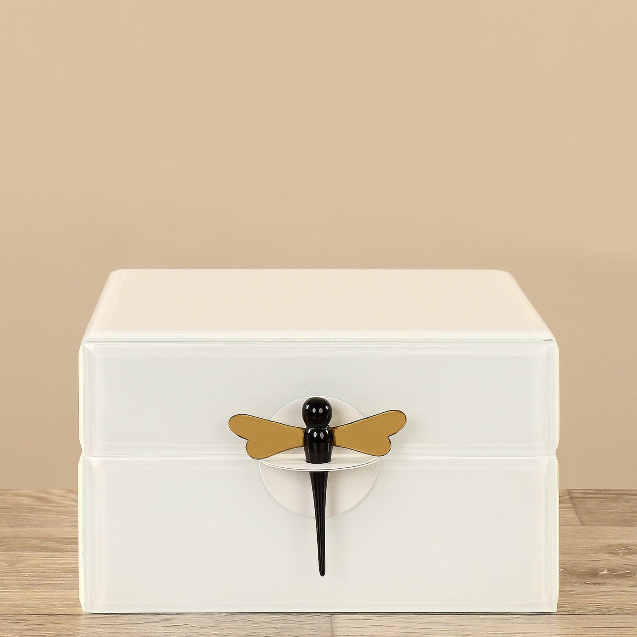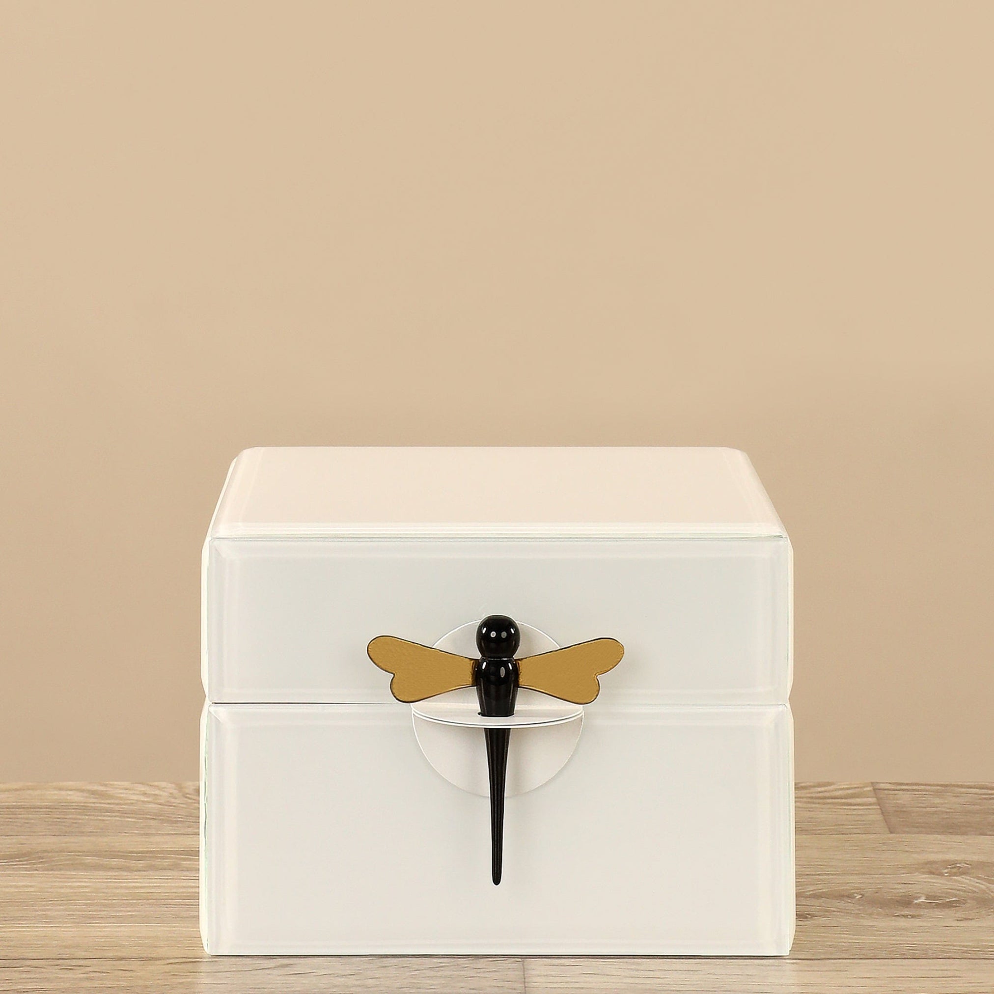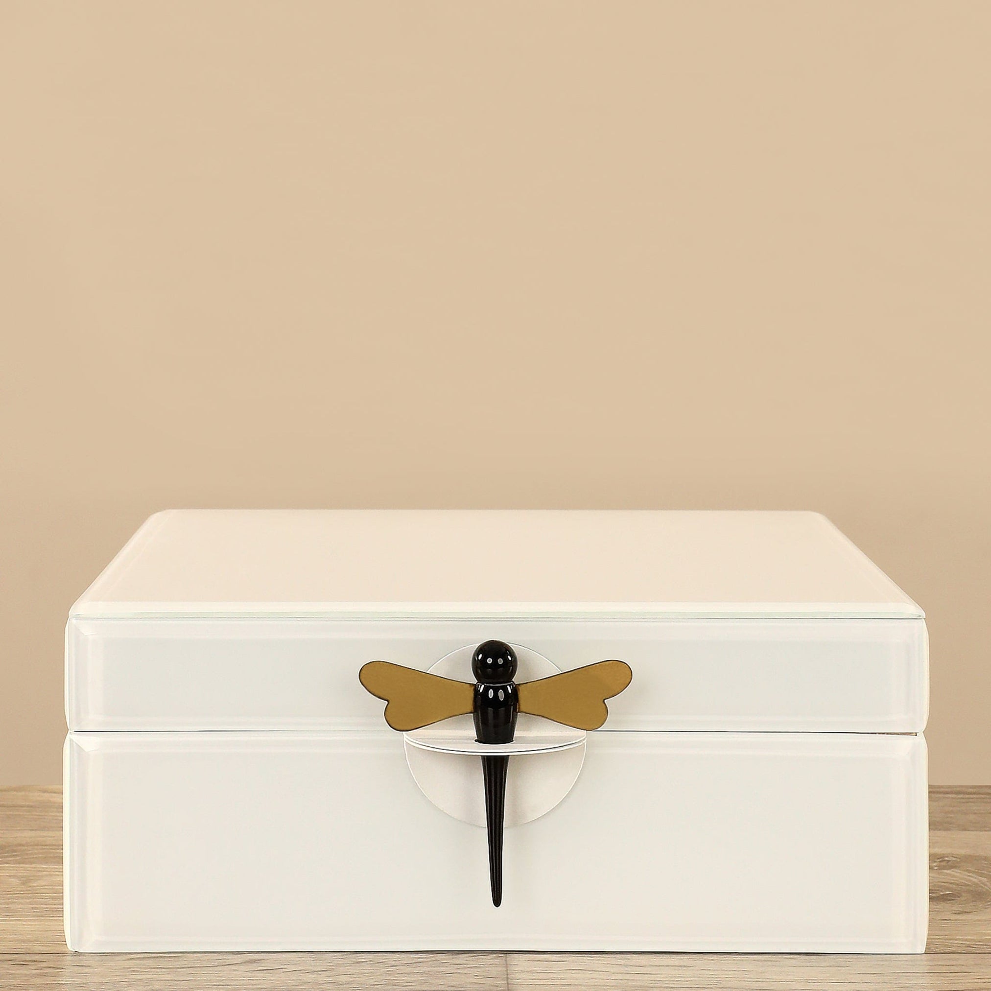 Adorned with a glossy and versatile white finish, this elegant Jewelry Box boasts a distinctive dragonfly clasp that sets it apart. With its perfect size for accommodating everything from precious jewelry to cherished mementos, this sleek box is guaranteed to add appeal to any surface.