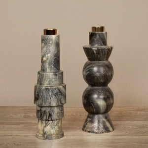 A beautiful example of contemporary style these candle holders stand out as statement-making decor pieces. Perfect for taper candles these set of candle holders are crafted in marble and detailed with metal to lend interest and allure to any setting.