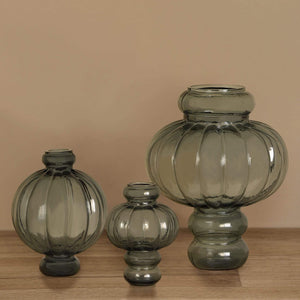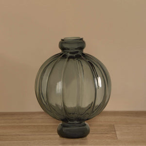 The distinctive form and beautiful ribbed design of this glass vase make it a sophisticated option for any decor style. Whether used as a standalone piece or filled with artificial flowers or blossoming branches, the Melon Vase can stand alone as a striking centerpiece on a shelf, table, or mantel, or be arranged in a group to make a bold visual statement.
