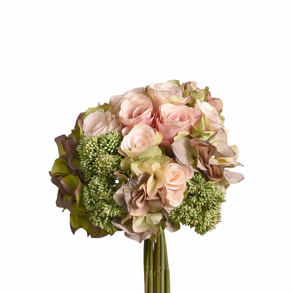 A pretty flower posy is a sure way to brighten the day. Beautifully crafted in amazing detail and vivid color this artificial flower bouquet could be tucked into a vase or wreath or used as a handheld bouquet for a special event.