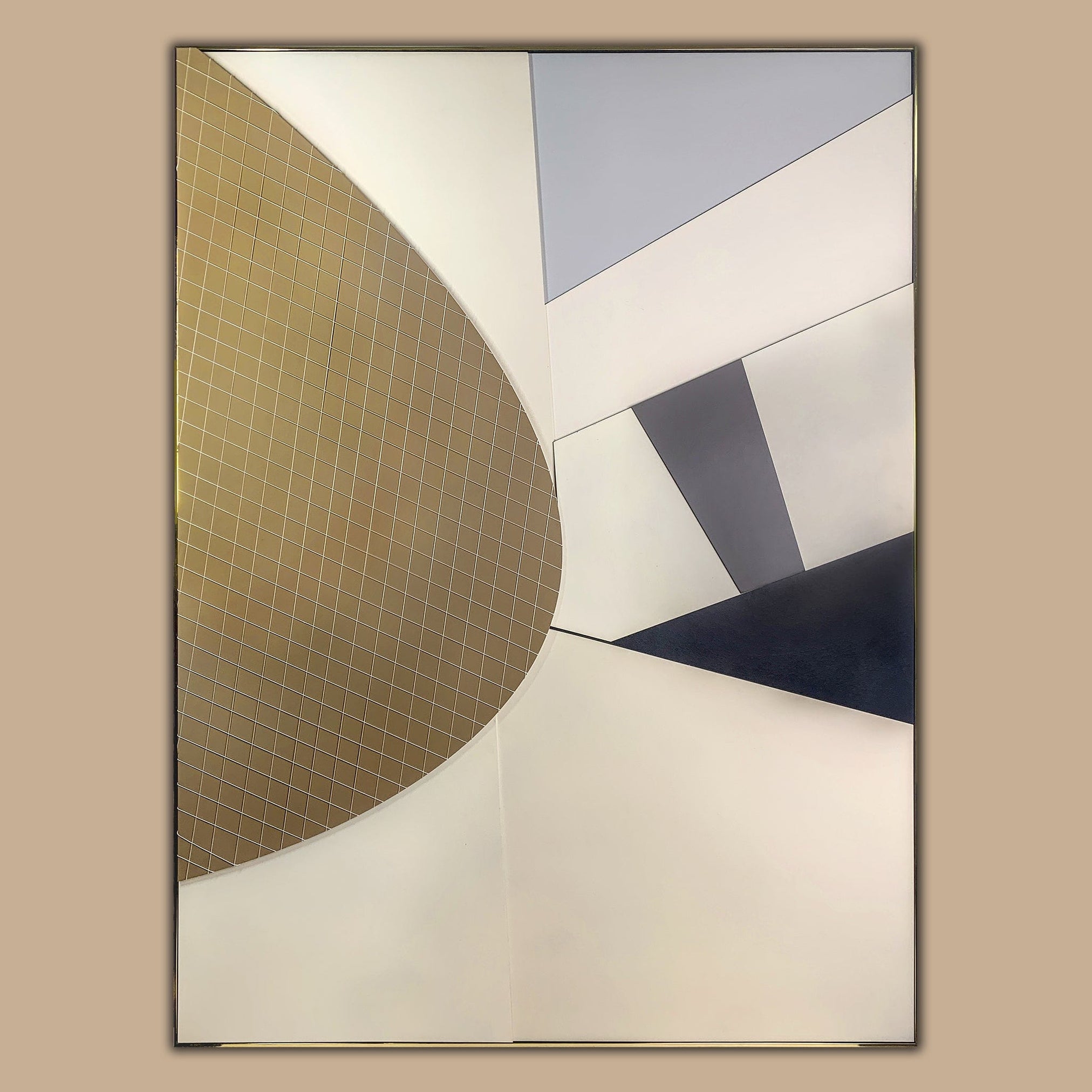 Revitalize your space with the allure of painting, collage design, and S.S. modeling showcased in this modern work of art. The attention-grabbing design and neutral palette will elevate and enrich any decorating style, infusing a bold and sophisticated aesthetic into your space.