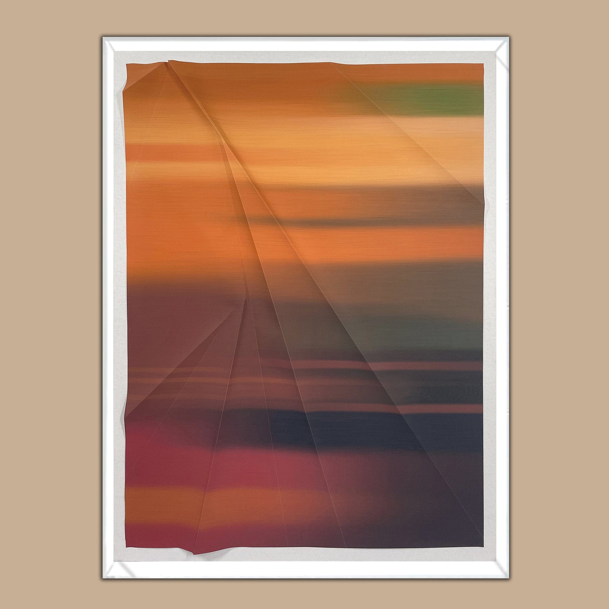 Enhance your aesthetic with this acrylic box-framed work of art. The composition is alive with a handmade paper collage and painting to create a dynamic visual resulting in a contemporary artwork that captivates with its depth and composition.