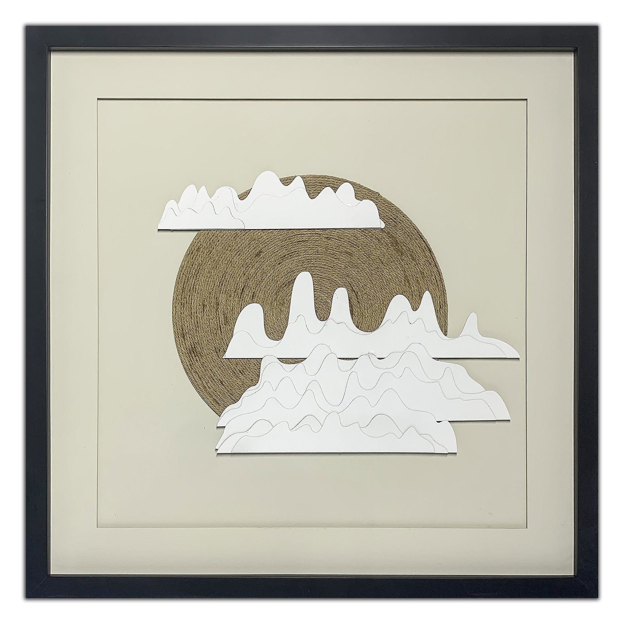 Transform a bare wall with this contemporary painting. Its graphic design utilizes wood and cardboard modeling effortlessly complements various decor styles. Elegantly framed in black, this sophisticated artwork offers a simple yet impactful way to rejuvenate a space.