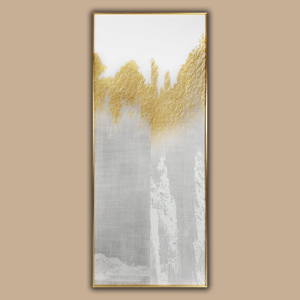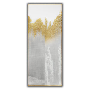 Surround yourself with the timeless elegance of this gold-framed contemporary artwork. Crafted with 3D texture, this work exudes a luminosity that immediately captures the eye. The abstract format takes center stage, forming an intricate mixture of shapes and textures reminiscent of mid-century modern aesthetics.