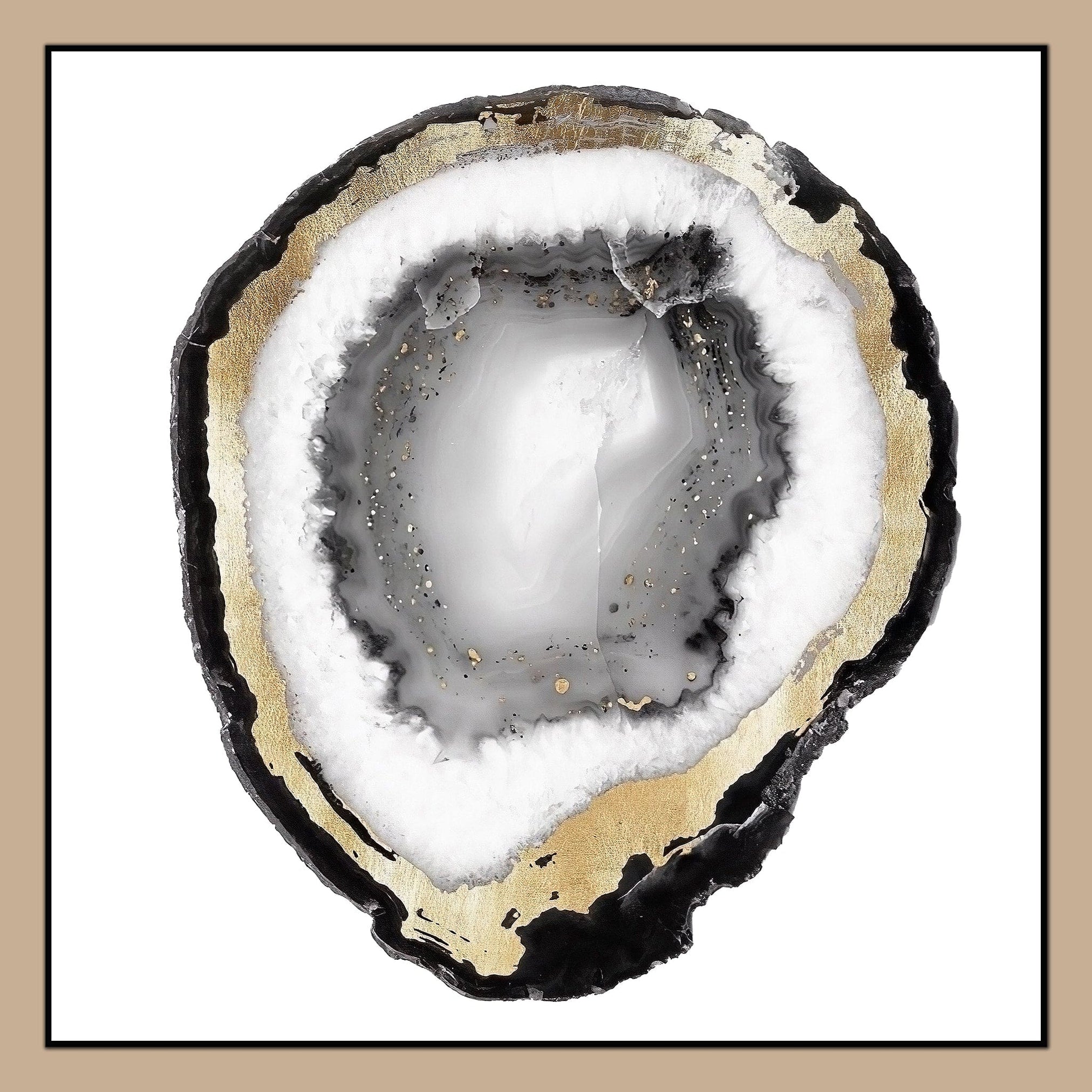 This modern artwork skillfully fuses abstract shapes with a vibrant array of neutral tones. This visually arresting UV print composition forms a stunning representation of a quartz rock, illustrating both substance and style.