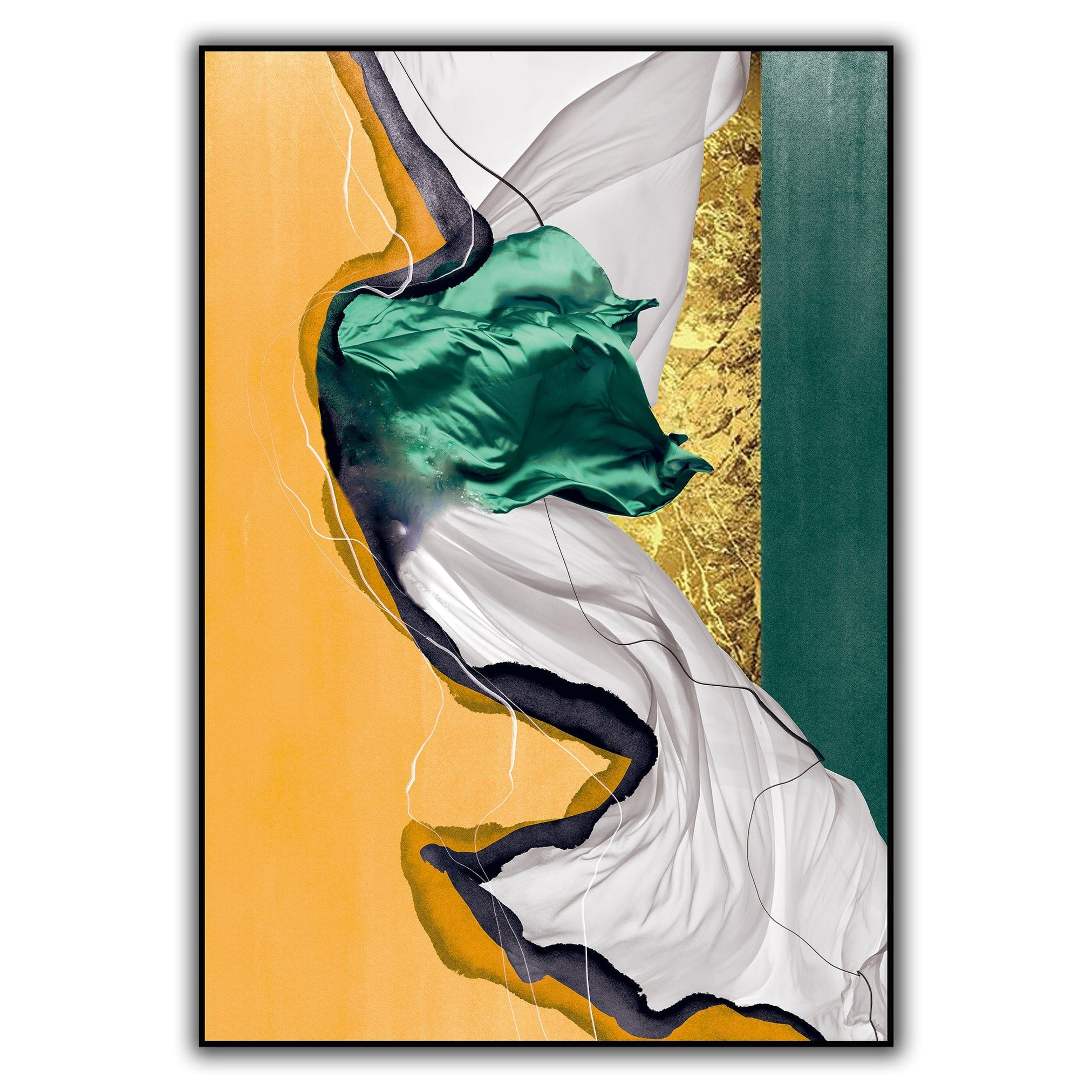 Vibrant and dynamic, this UV print bursts with vivid yellow and emerald green, commanding attention with its presence. The contemporary flair is accentuated by a sleek black frame, providing a definitive look that will complement modern decorating styles.