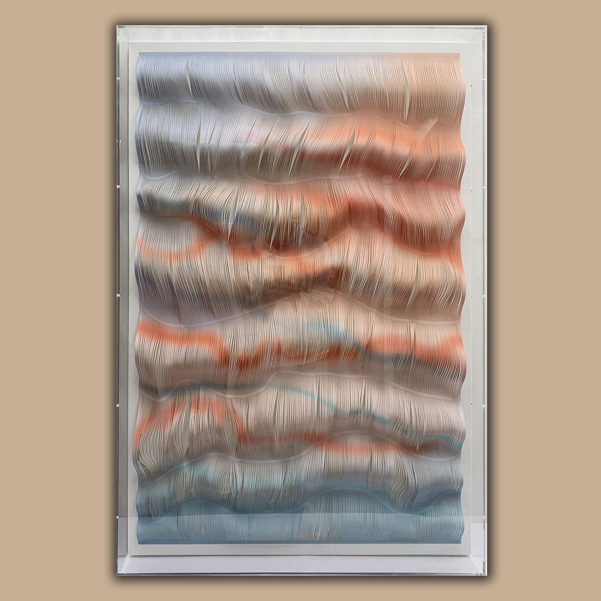 Crafted with meticulous attention to detail, this work of art boasts painted paper to create an undulating effect. Crafted in neutral tones, this piece exudes a sense of modern elegance, enhancing its impact and commanding attention in any space.