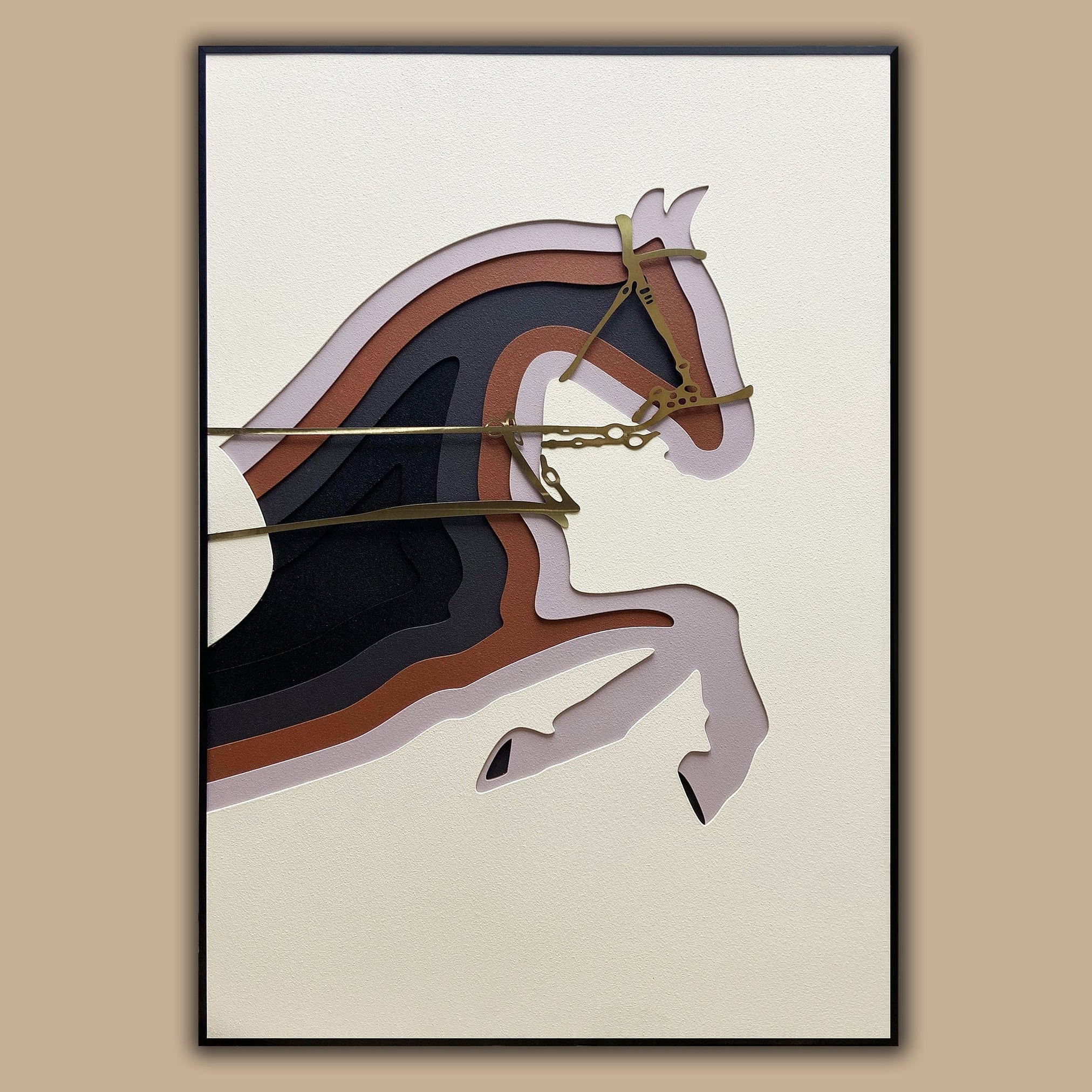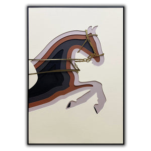 Crafted with meticulous attention to detail, this work of art boasts mixed media to produce a horse silhouette designed from carved layers. Crafted in versatile tones, this piece exudes a sense of modern elegance, enhancing its impact and commanding attention in any space.