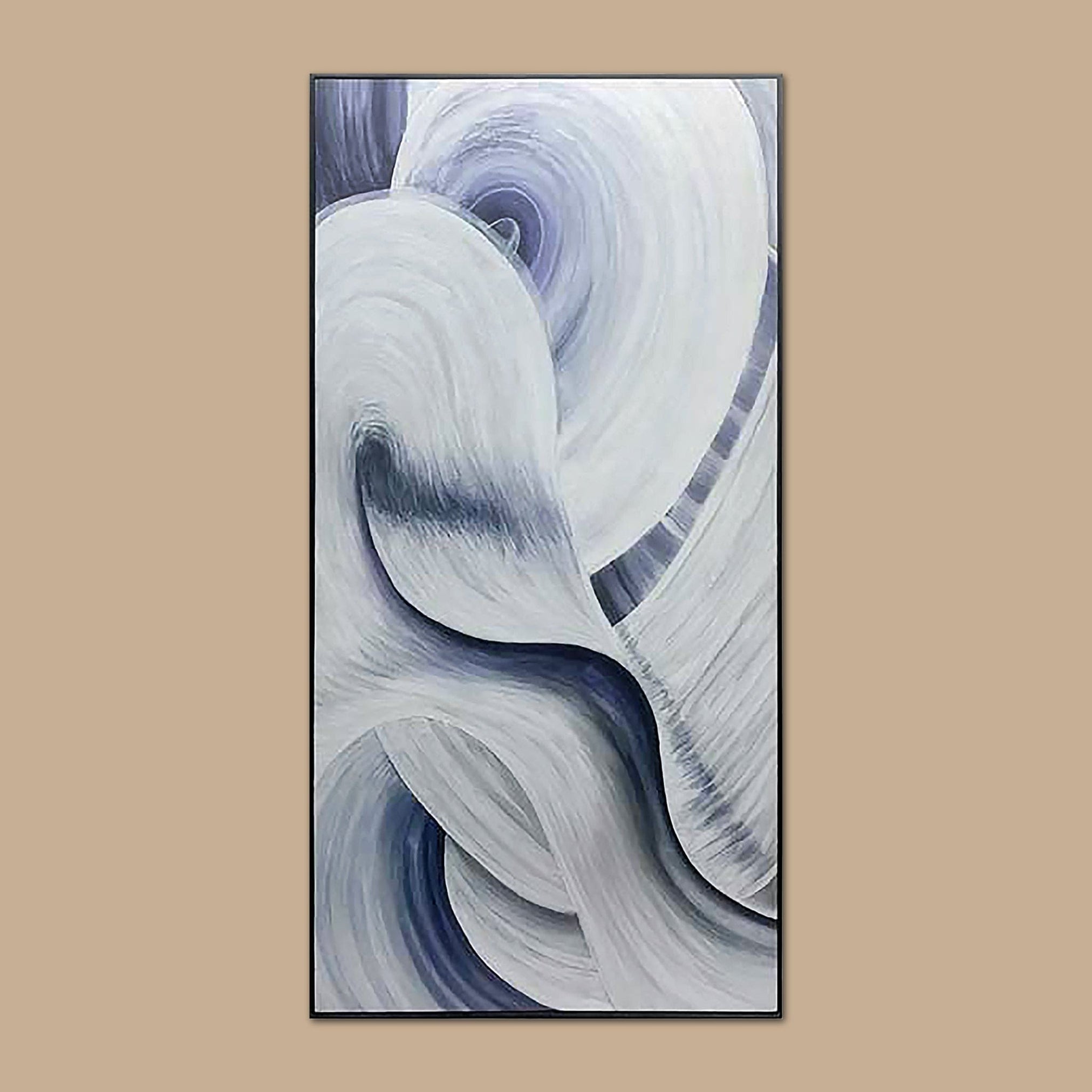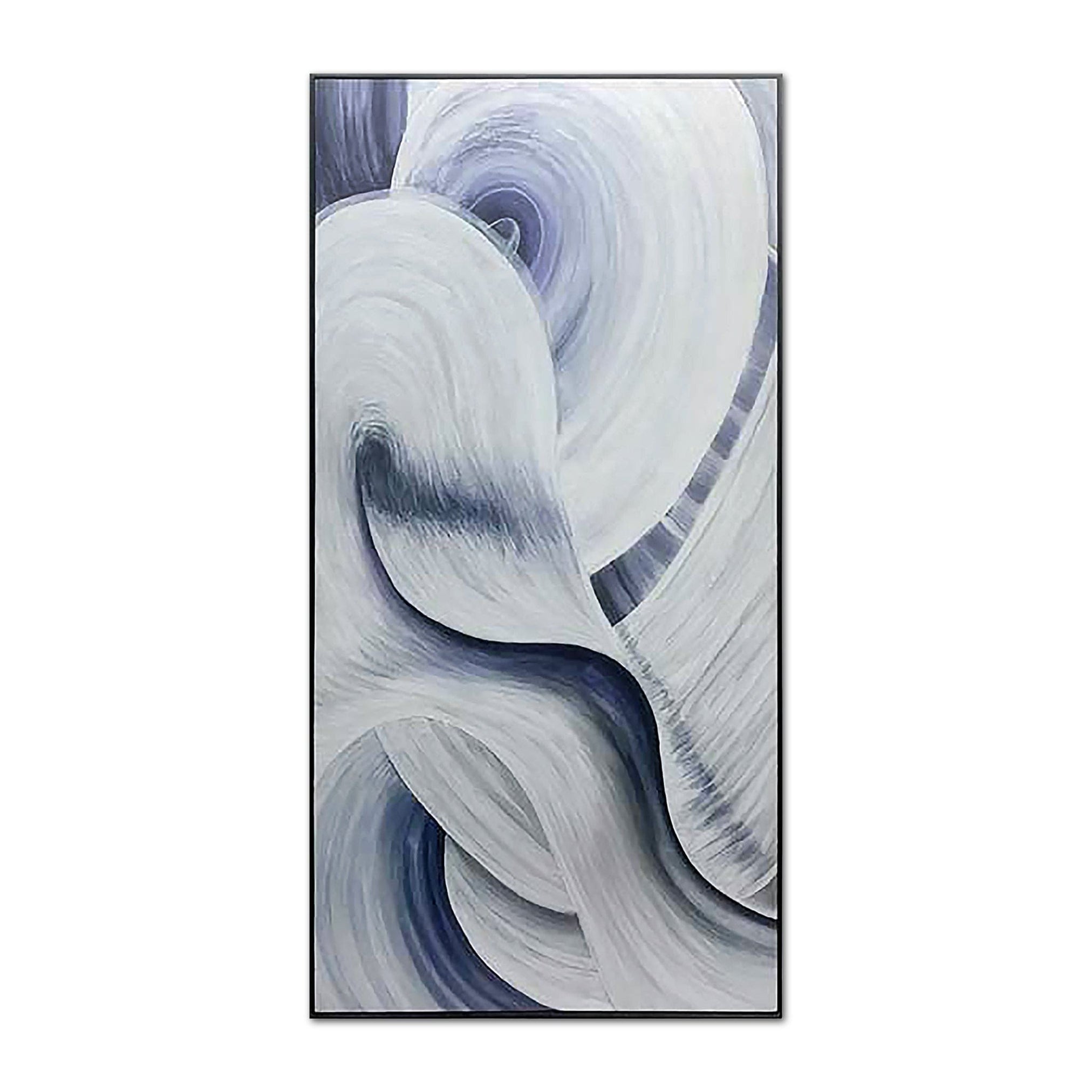Lend modern sophistication to a space with this contemporary acrylic painting. With its black and white tones, this artwork exudes a feeling of elegance and understated luxury. Enhanced by a sleek black frame, the composition captivates the eye with its masterful use of contrast and composition.