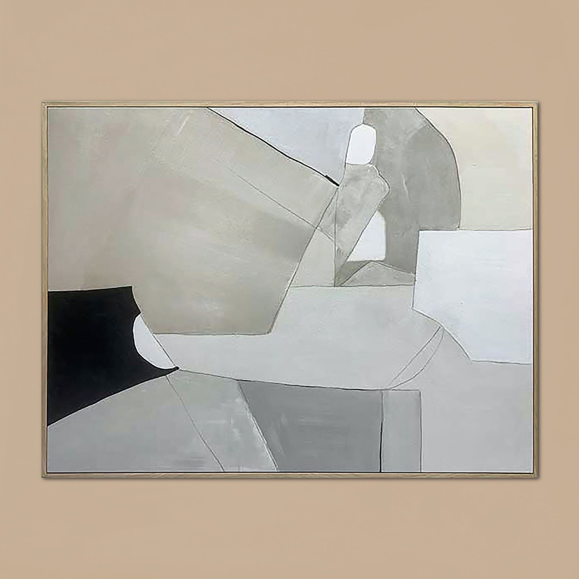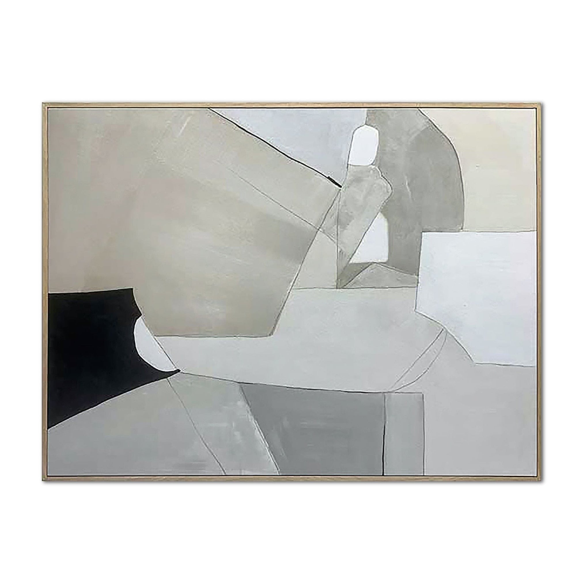 Immerse yourself in the dynamic world of contemporary art with this contemporary acrylic painting. Created with a blend of texture, graphics, and neutral tones, this wood-framed masterpiece makes a striking impact, showcasing the artist's expressive vision and creative energy.