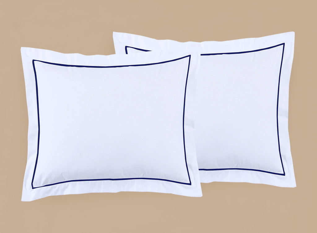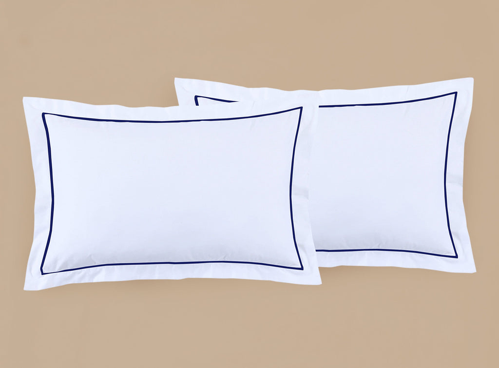 Indulge in luxury and comfort with our luxurious pillowcase set from The Premium Hotel Collection. Crafted from wonderfully soft 500-thread-count Egyptian cotton, these pillowcases offer a restful night's sleep. Detailed with navy embroidery on a pristine white backdrop, and featuring a wide flange detail, they offer sophistication and charm to elevate your bedroom decor.