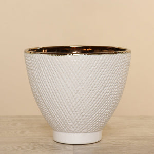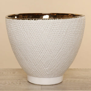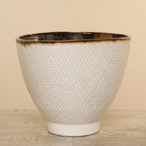 Our Round Ceramic Pot is a beautiful pot that will bring a touch of natural charm to any setting. Terrific for housing artificial trees or plants, this versatile ceramic pot adds elegance to both indoor and outdoor spaces. Its sturdy construction and finish provide a timeless appeal making it an ideal choice for patios, living rooms, or garden areas.