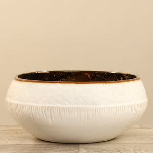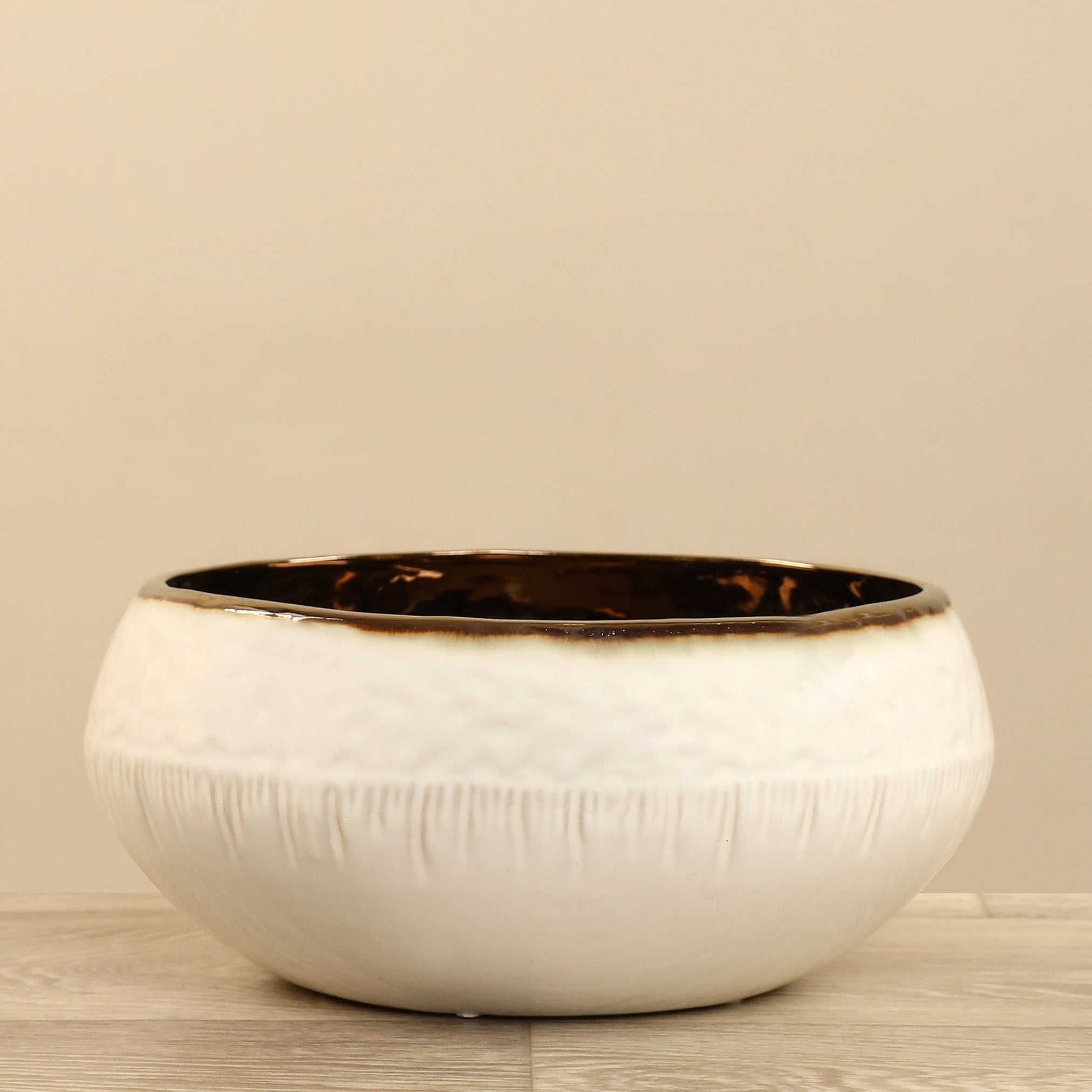 Our Round Ceramic Pot is a beautiful pot that will bring a touch of natural charm to any setting. Terrific for housing artificial trees or plants, this versatile ceramic pot adds elegance to both indoor and outdoor spaces. Its sturdy construction and finish provide a timeless appeal making it an ideal choice for patios, living rooms, or garden areas.