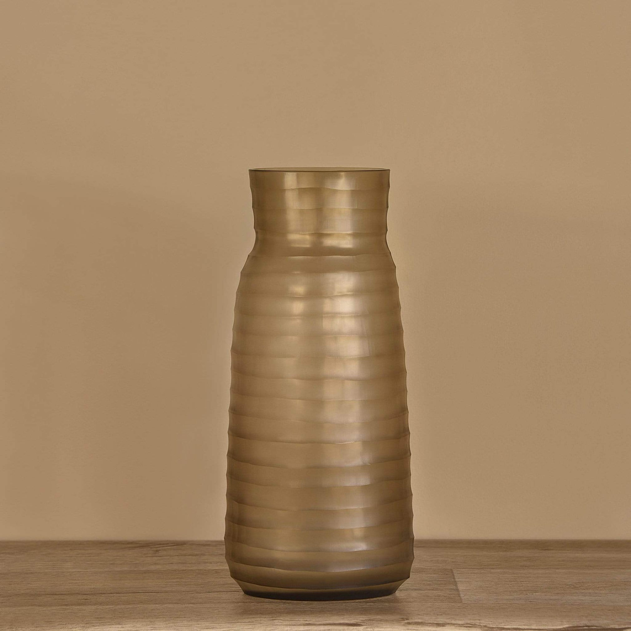 The Potli Glass Vase stands tall with minimalist fluting for added texture. Its understated light smoke tone adds warmth and sophistication to any space, while the glass material exudes timeless elegance. Perfect for showcasing branches, long stems, or as a striking standalone piece, this vase effortlessly elevates any décor.
