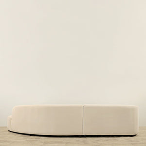 The Santos Sofa has a gracious curving silhouette complemented by rounded arms and all-over velvet upholstery. Modern, elegant, and sophisticated this sofa has a plush and inviting look reminiscent of relaxed modernism