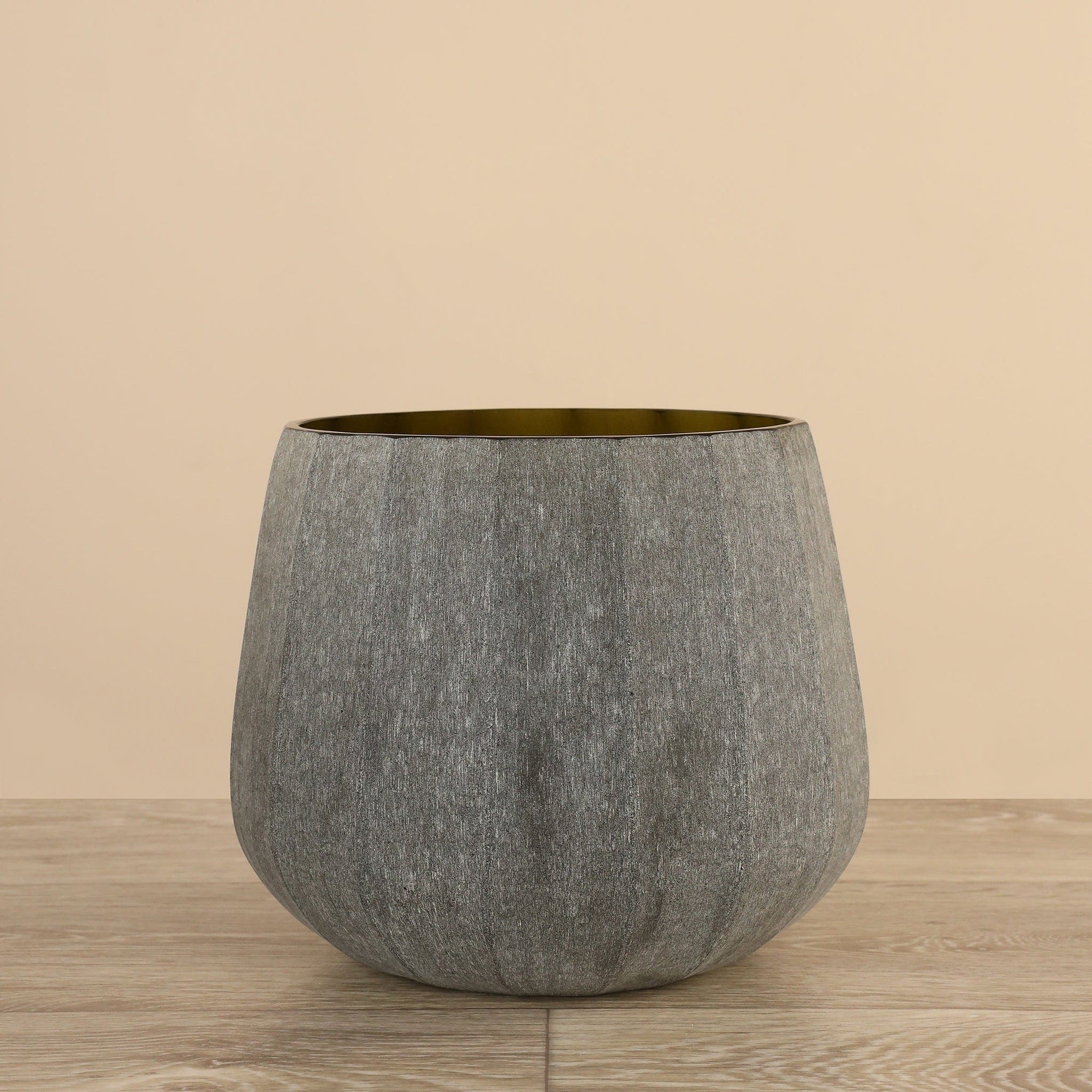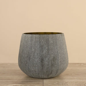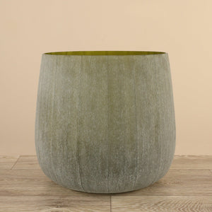 The Urli Vase is a striking blend of modern design and chic elegance. Standing taller with an open-top style, it is perfect for showcasing long-stemmed flowers or decorative branches. The interior features a metallic finish that adds a touch of glamour and creates a stunning contrast with the rough smoked glass exterior. The textured surface of the glass catches and reflects light beautifully, enhancing the vase's visual appeal. Ideal for contemporary interiors, this vase serves as a sophisticated centerpiece or an eye-catching accent, effortlessly adding a touch of refinement to any space.