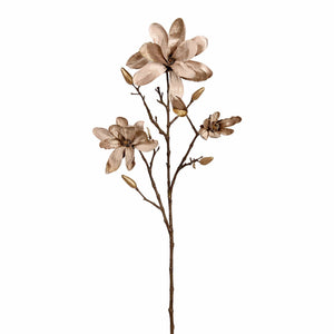 Our Velvet Magnolia is a lovely floral piece that brings timeless elegance to any space. This stunning piece features lush magnolia blooms crafted from velvety fabric, exuding a rich, soft texture and a naturalistic appearance. The magnolia petals are delicately detailed, capturing the flowers' graceful beauty and subtle charm