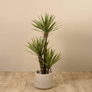 Give your home a dose of desert style. This artificial yucca plant looks and feels surprisingly real, from its textured trunk to its spiky green leaves. Place it in a concrete pot to complete the look.