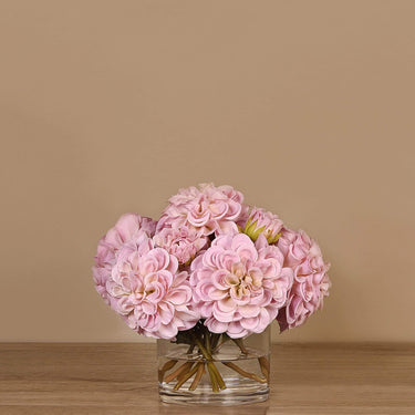 باقة زهور الداليا الصناعية في مزهرية زجاجية