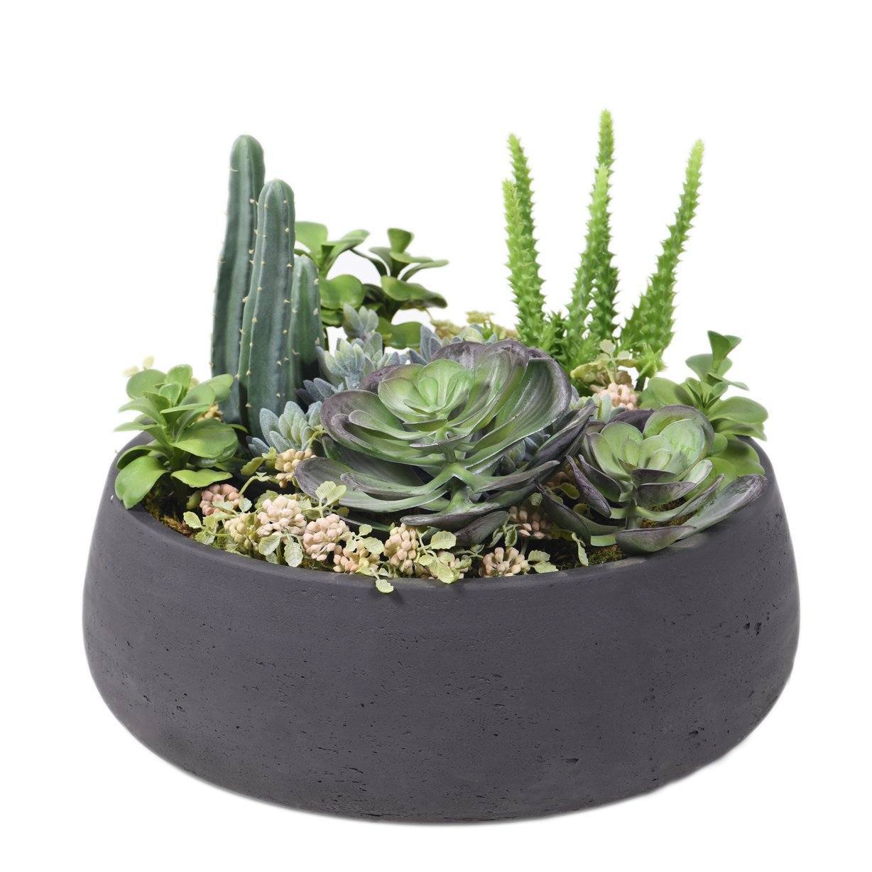 حوّل منزلك إلى واحة هادئة ومريحة مع هذا التنسيق الجميل. قام فريقنا من خبراء تنسيق الأزهار بترتيب النباتات العصارية، والصبار العمودي، والخضرة بشكل احترافي في وعاء خرسانى لخلق مركز طاولة عصري وأنيق.