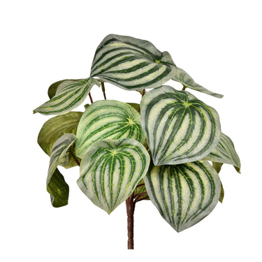 Skillfully crafted, this peperomia showcases its attractive teardrop shape and intricate veins on this artificial stem, making it an ideal addition for floral arrangements and other displays.