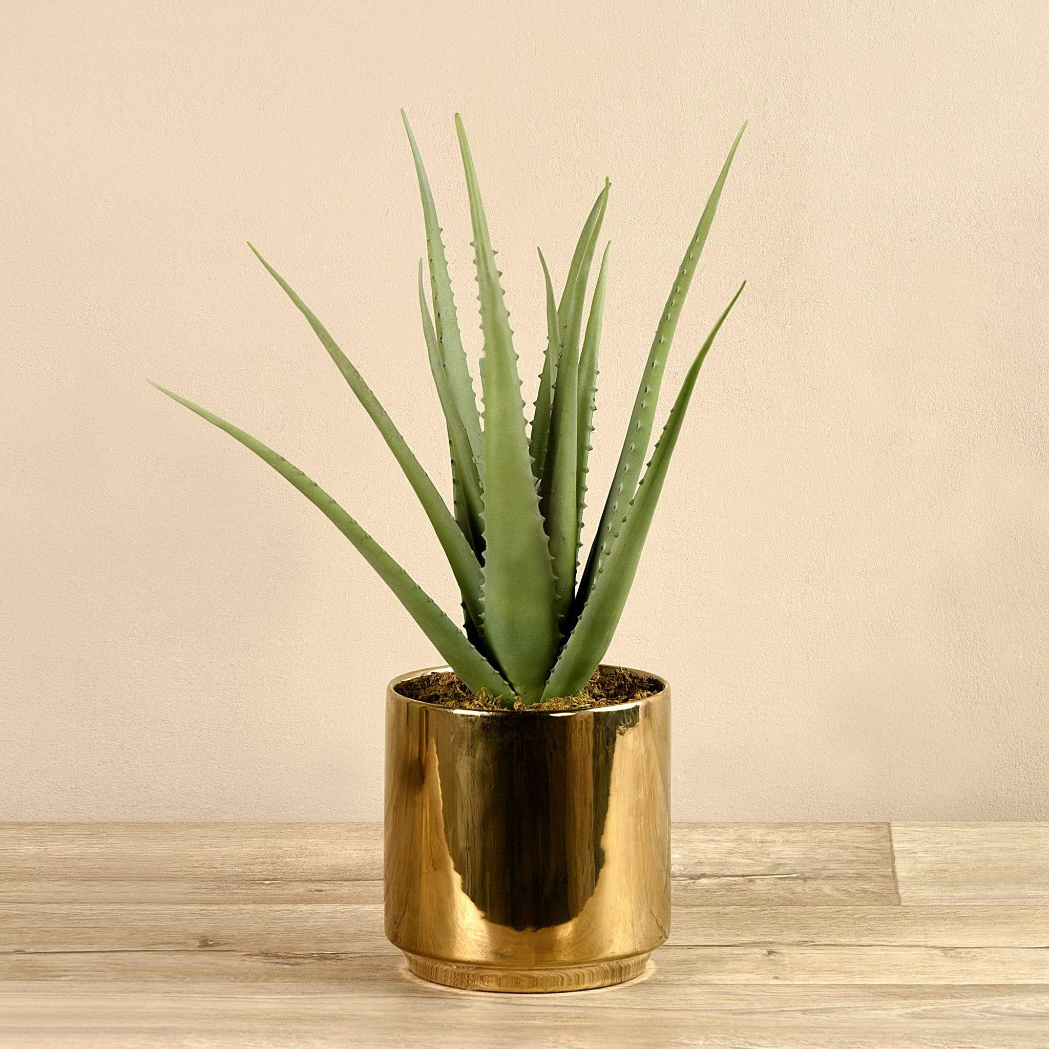 أضف جمال الطبيعة إلى ديكورك بدون أي فوضى مع نبات الألوة المزروع الأنيق. من الأوراق الشائكة الكثيفة إلى الحاوية العصرية، هذا النبات الصناعي الجميل من الألوة هو طريقة سهلة لإضفاء مظهر منعش على الطاولة أو الرف أو الكونسول.