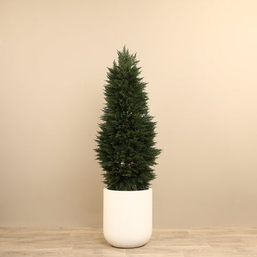 مصممة لتبدو كالنبات الطبيعي، تتميز شجرة السرو الصناعية بأوراقها المتناسقة التي تضفي مظهراً طبيعياً وجميلاً. مثالية كقطعة منفردة أو كجزء من تنسيق لإضفاء لمسة طبيعية تناسب أي نمط ديكور.