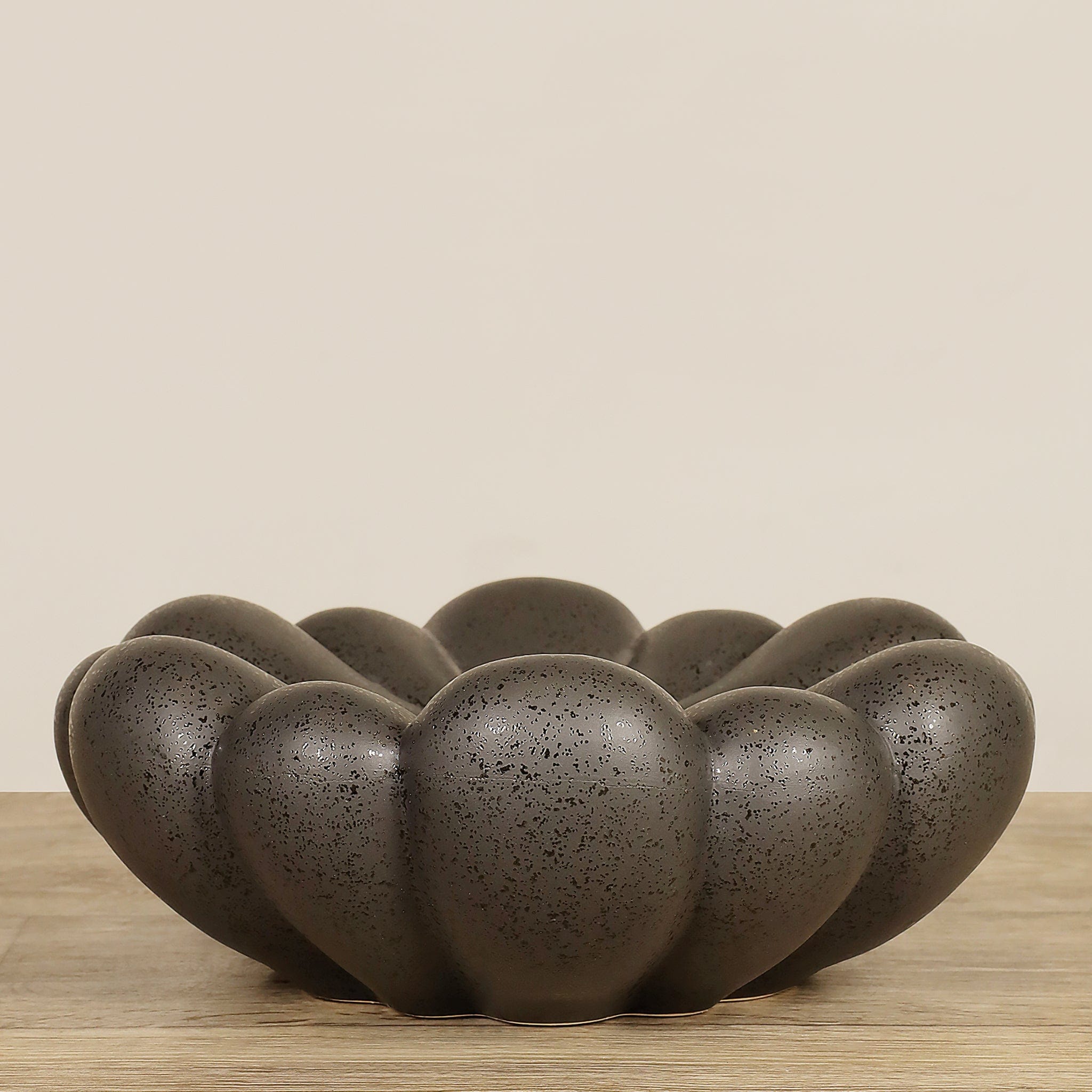 الجوانب المتموجة بدقة في هذه القطعة السيراميكية الفاخرة تجعلها تنسجم بسلاسة مع البيئات العصرية. بتصميم يجسد جوهر الجماليات الحديثة، تتألق هذه المنحوتة السيراميكية سواء وُضعت على رف بارز، أو زيّنت طاولة جانبية راقية، أو اتخذت مكانها كقطعة مركزية جذابة.