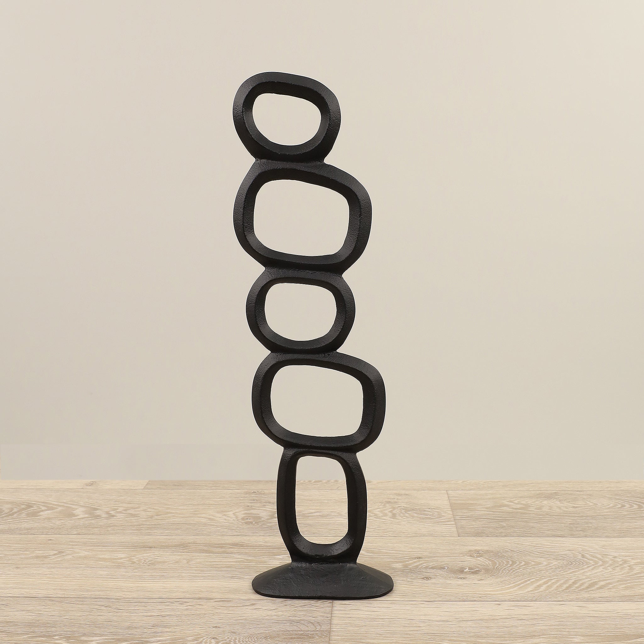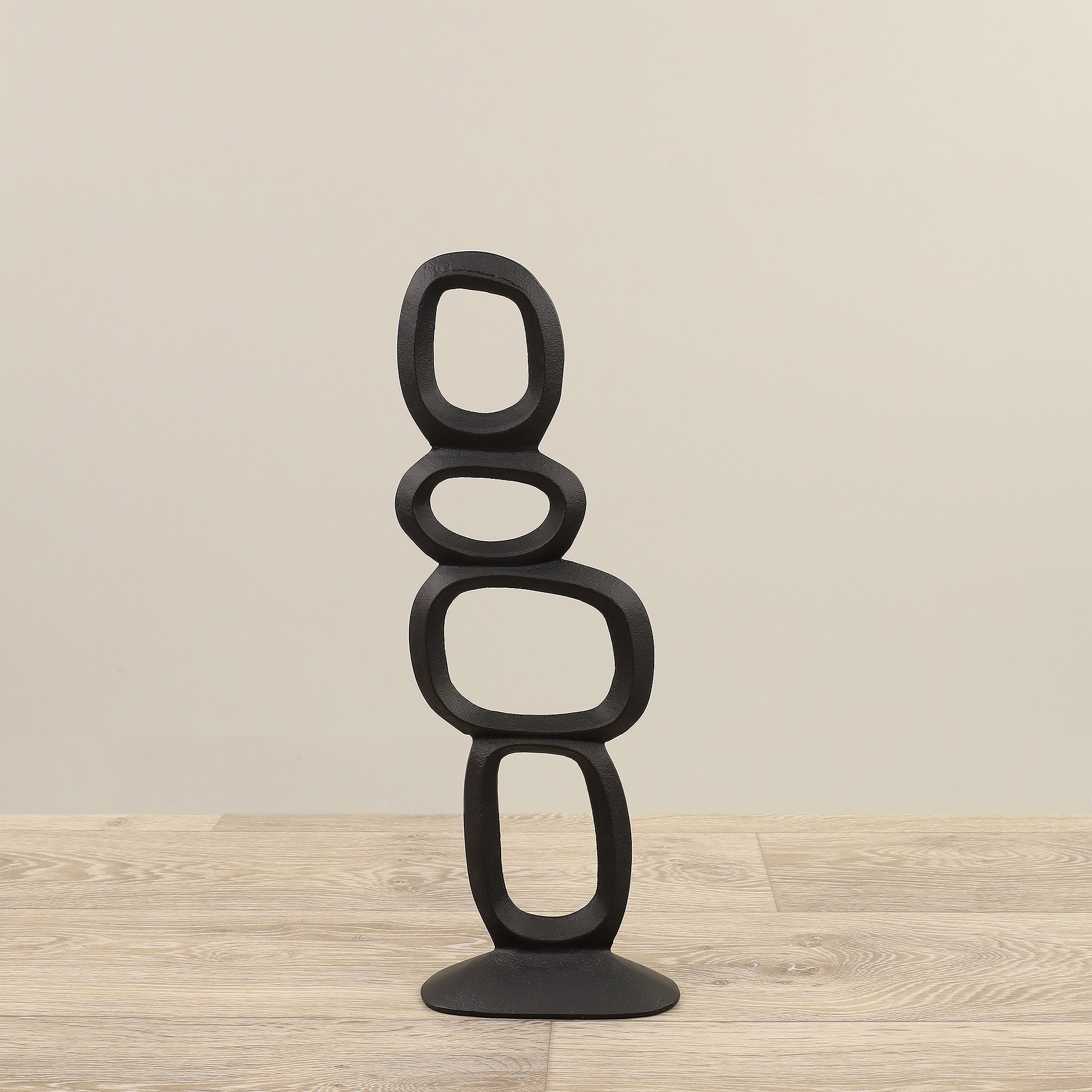 قطعة فنية تجريدية عصرية ومتقنة. تتميز هذه القطعة الفنية بنهاية سوداء وقاعدة سوداء قوية، مما يضيف لمسة من الأناقة العصرية.