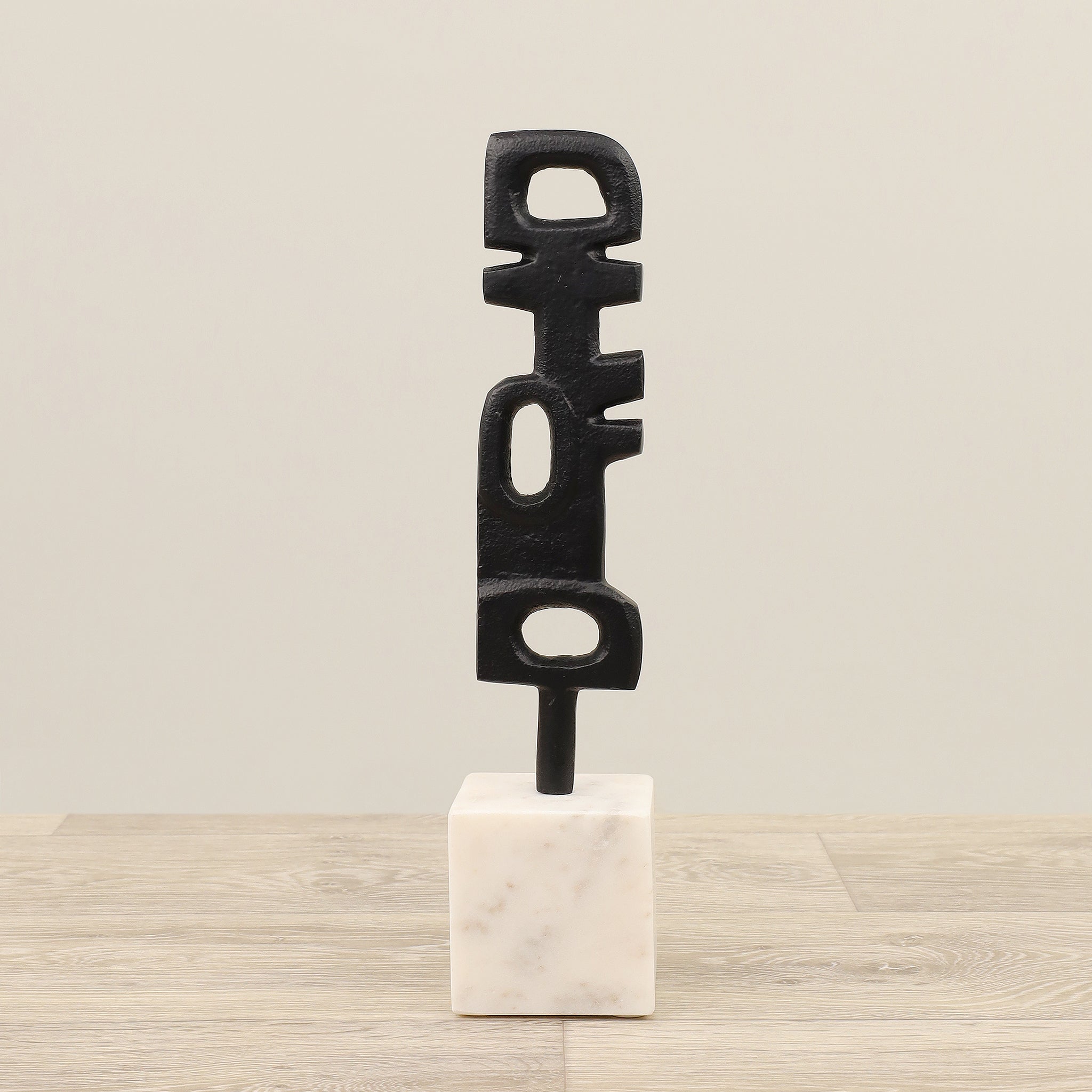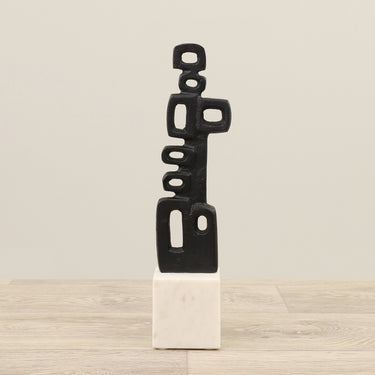 عصرية، تجريدية، ومتقنة للغاية. تتميز هذه القطعة الفنية المنقوشة بتشطيب أسود وقاعدة بيضاء.