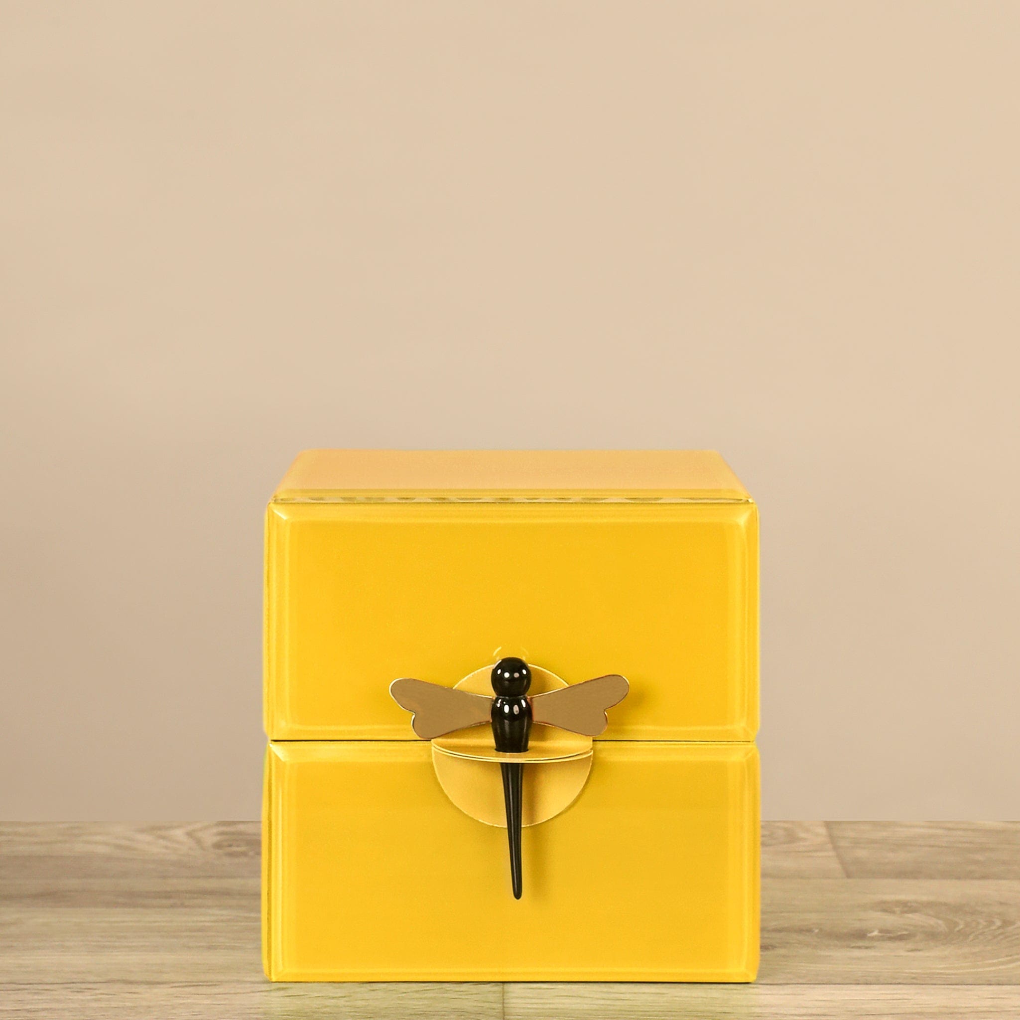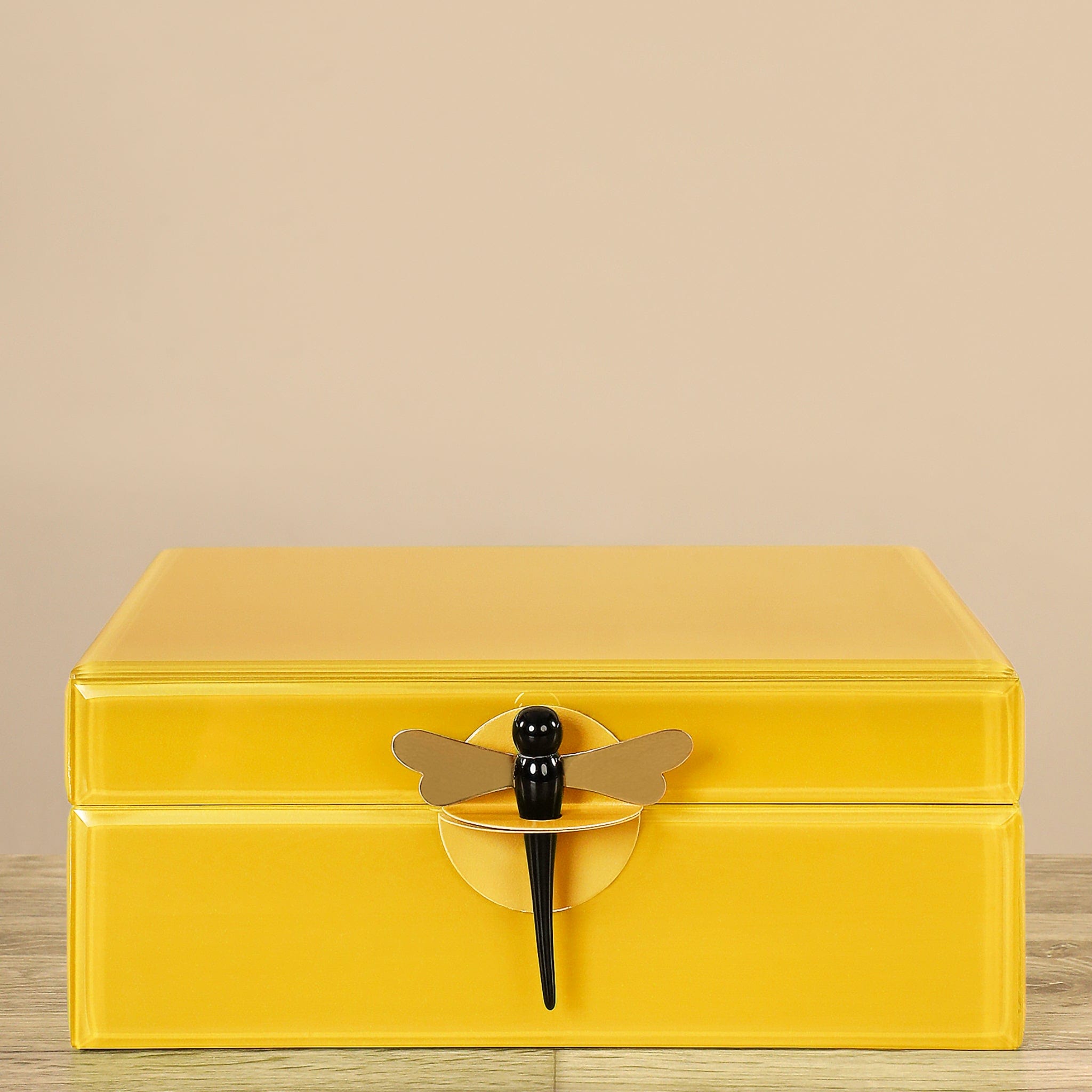 صندوق زجاجي أصفر خردلي مع يعسوب