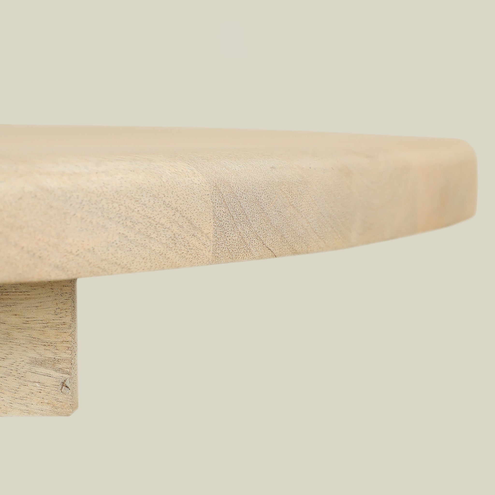 The meticulously crafted wooden top showcases natural grain patterns, while the gracefully curved base provides both visual interest and structural refinement.