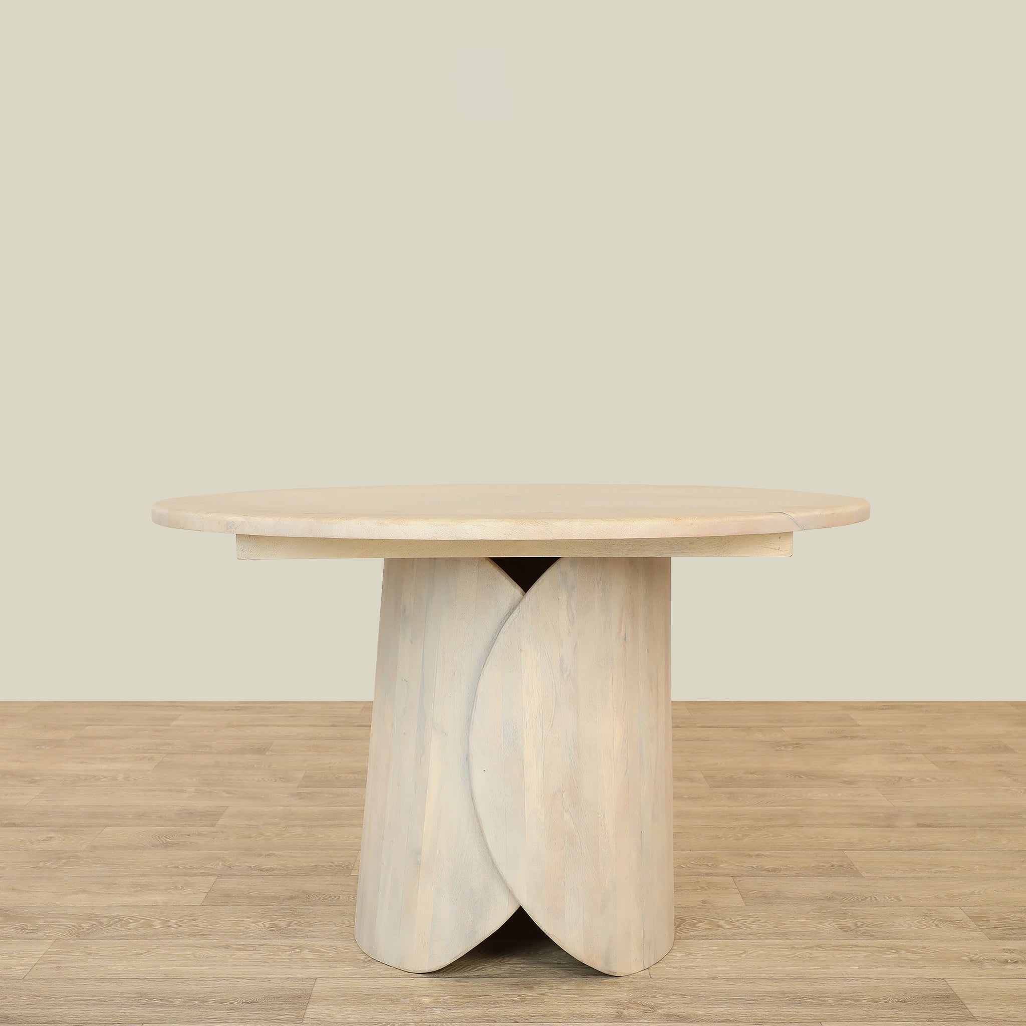 Discover timeless elegance with this exquisitely designed wooden dining table, showcasing a premium wooden top complemented by a gracefully curved panel base.