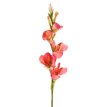 فرع من زهور الدلبوث الوردية بتفاصيل شديدة الدقة حتى أنها تبدو طبيعية تماماً. تتميز هذه الزهور بكبر حجمها وتفتح بتلاتها مع التفافها حول الفرع لتضيف لمسة جمالية بديعة على أي غرفة، وتملأها بالحياة والسلام والراحة.
