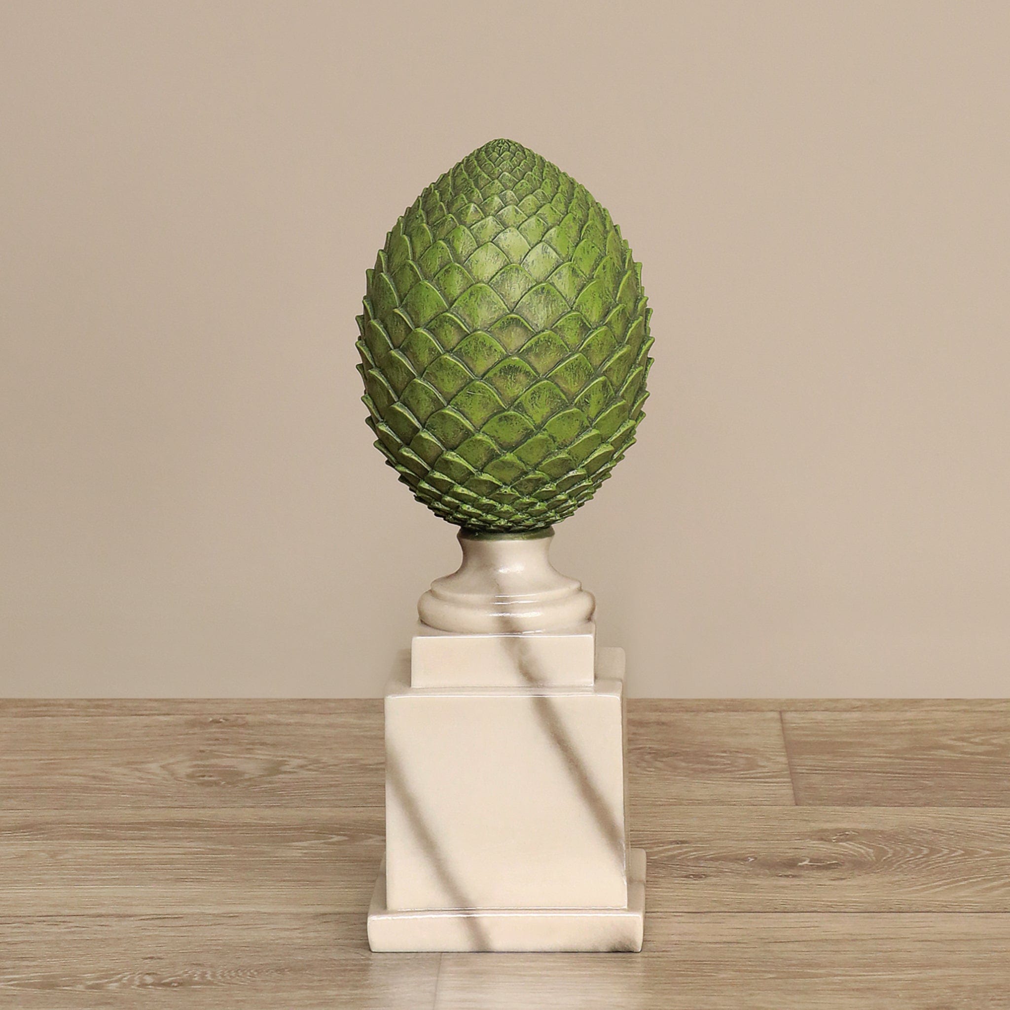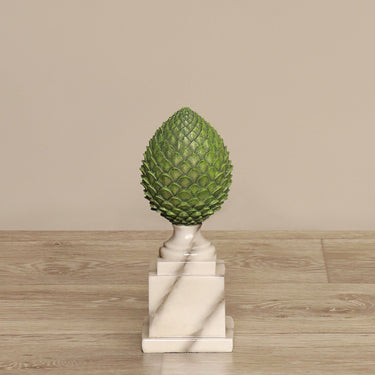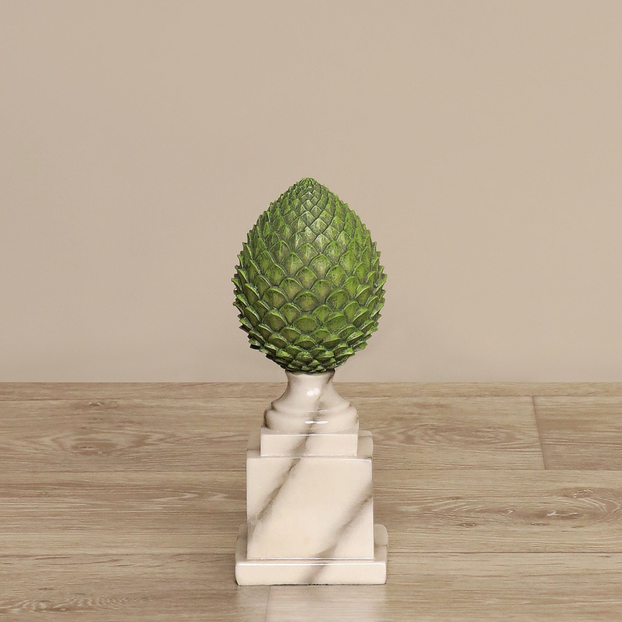أنيق ومرحب، هذه الزخرفة لثمرة الصنوبر مثالية لمدخل منزلك. تتميز بتصميم ثمرة صنوبر خضراء منقوشة وقاعدة متينة بتصميم رخامي.