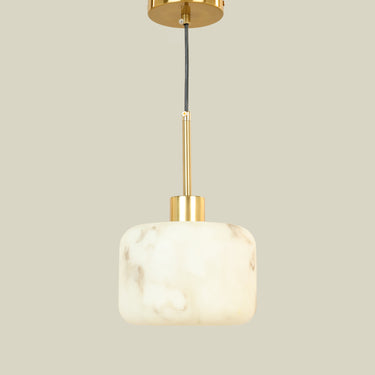 Constructed from robust metal paired with delicate imitation alabaster, it diffuses light with graceful warmth.