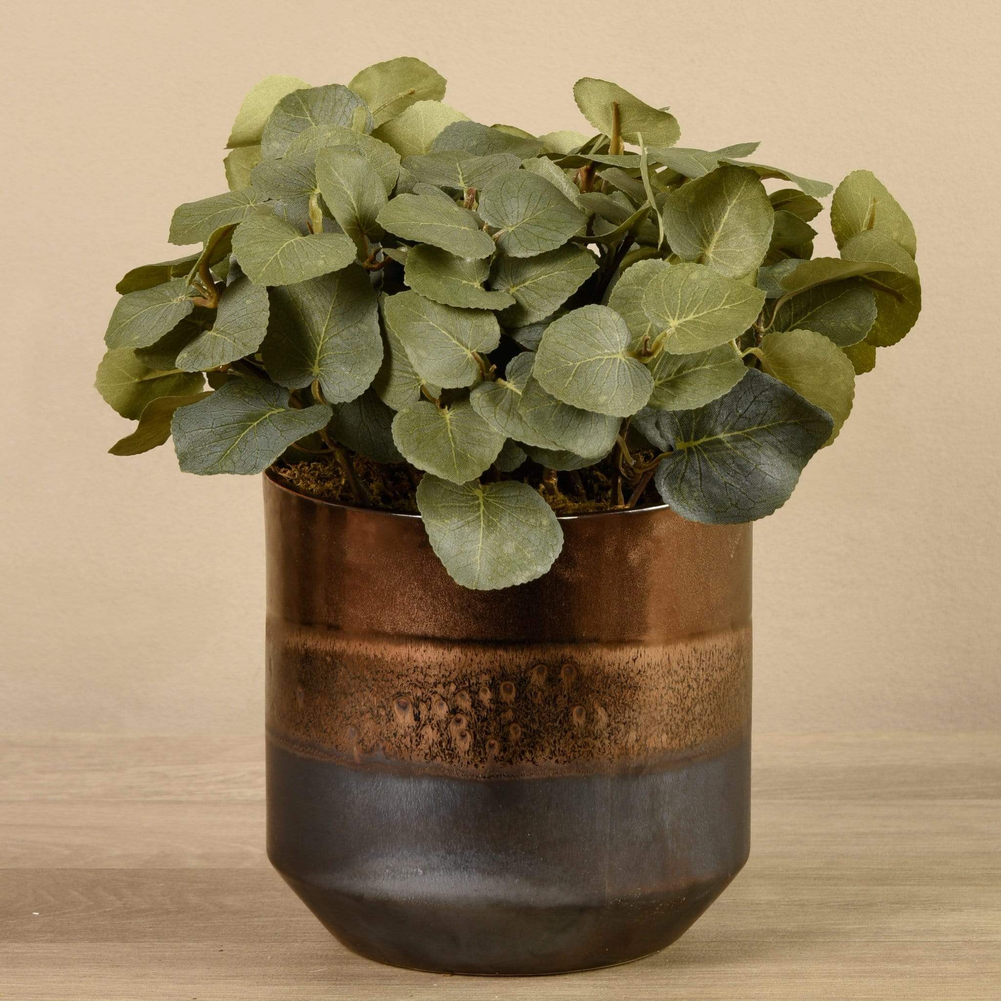 من المؤكد أن نبتة الأوكالبتوس الصناعية هذه ستضفي لمسة من الحيوية والسكينة على أي مساحة معيشة. أوراقها الخضراء تبدو واقعية بشكل مدهش عند اللمس، ويُكمل أصيصها ثنائي اللون بالرمادي والنحاسي أي نمط ديكور.