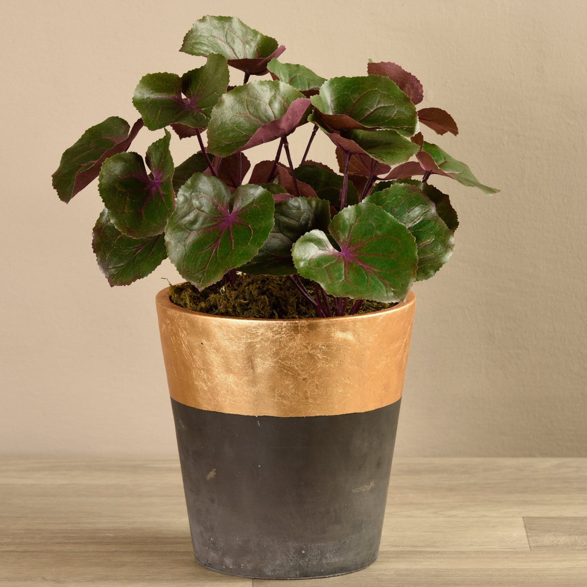المعروف أيضًا باسم نبات الفهد ، لن تذبل هذه الرابطة الاصطناعية النابضة بالحياة أو تغير بقعها أبدًا. تنبثق أوراقها الخضراء والحمراء اللامعة حقًا على الوعاء ذي اللونين الرمادي والنحاسي.