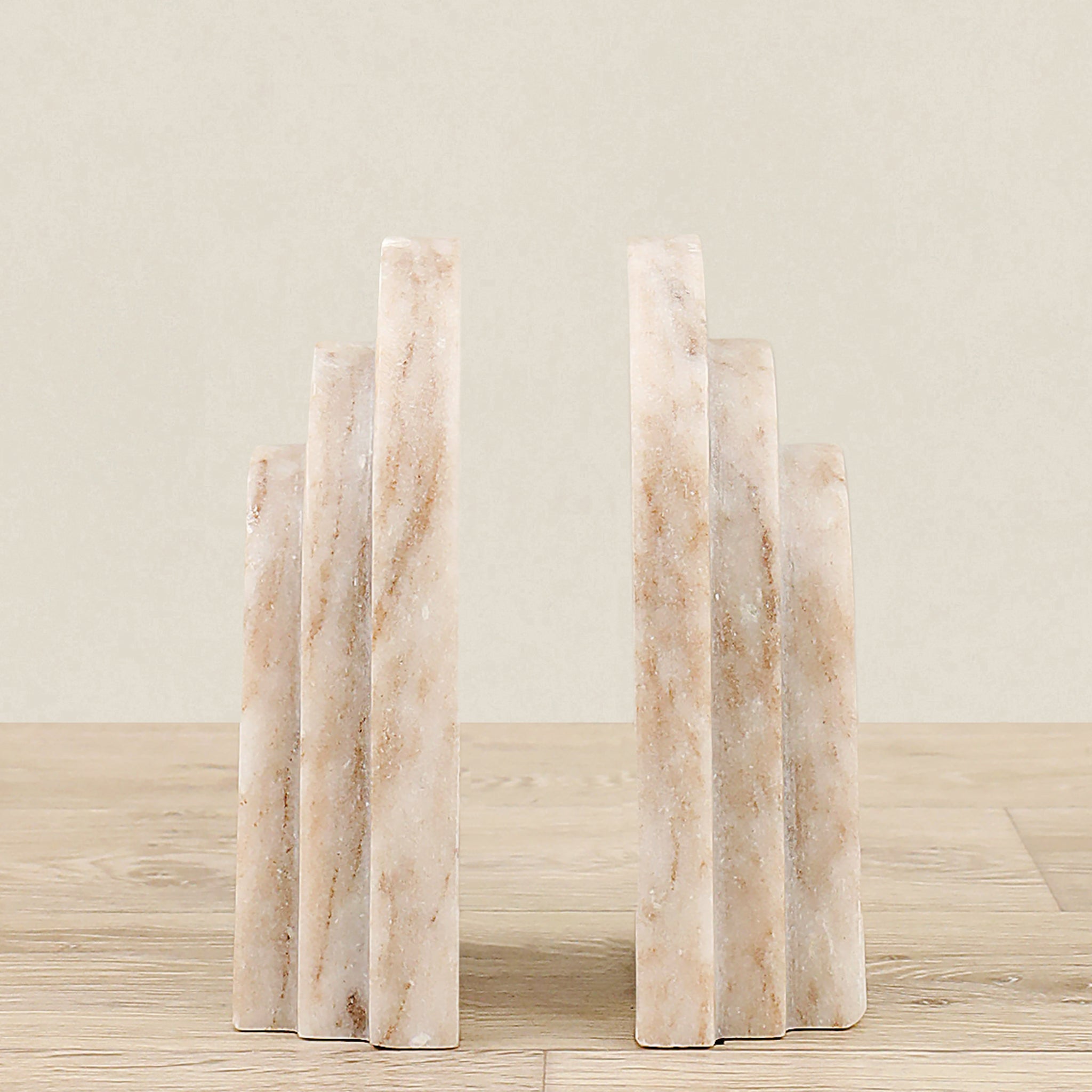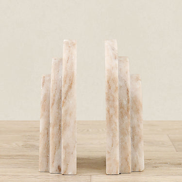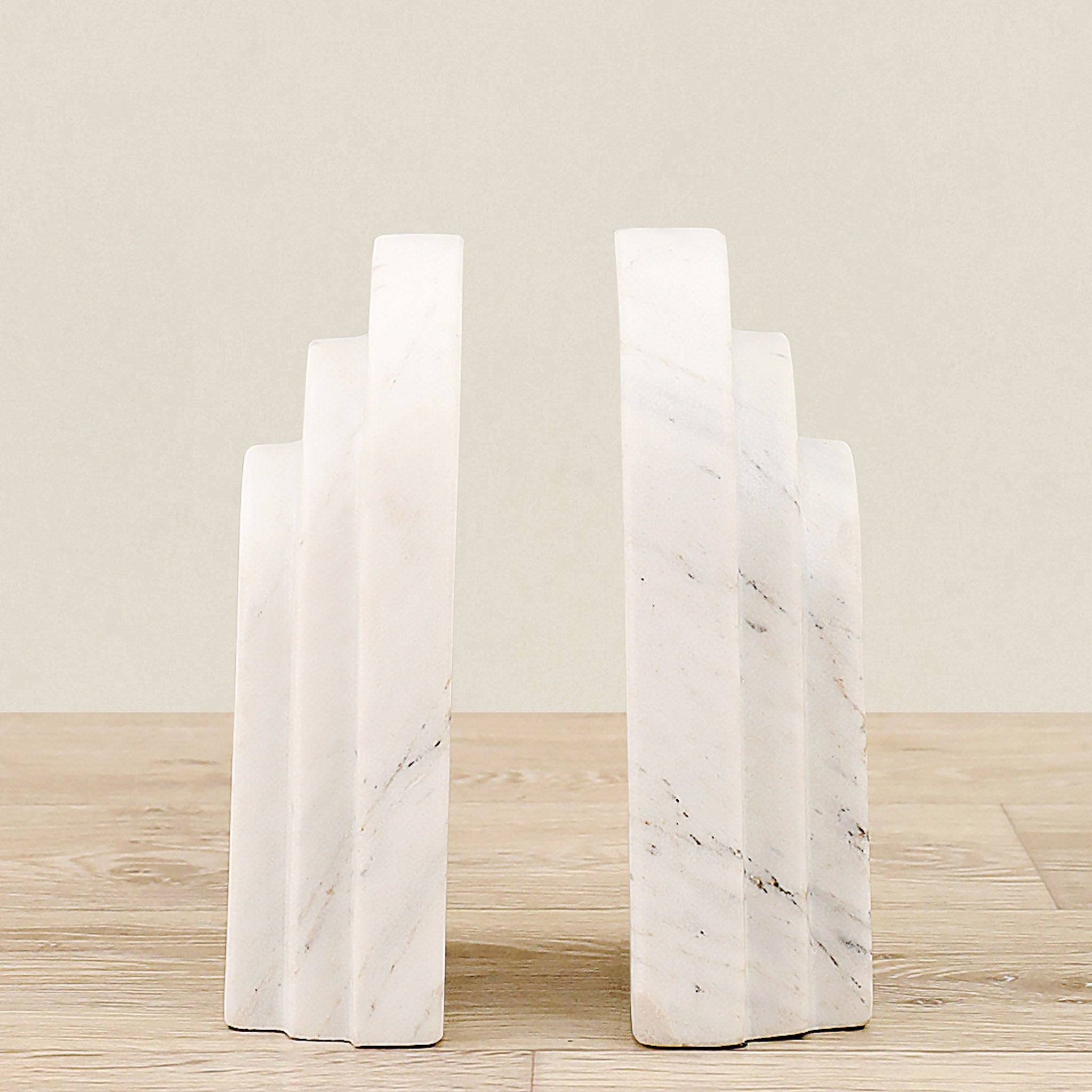 مصنوع من الرخام، يشكّل هذا الزوج من فواصل الكتب قوسًا خالدًا يضفي لمسة من التناسق والأناقة على الرف أو الطاولة الجانبية. وتُبرز الخطوط العرقية الجميلة في الرخام الشكل الأنيق، مما يضيف لمسة من الجاذبية والأسلوب إلى أي مساحة.