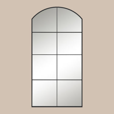 مرآة الحائط السوداء المصنوعة بشكل مقوس أنيق وتأثير زجاج النافذة هي اختيار سهل لإضفاء لمسة جمالية على الحائط. مثالية لغرفة النوم فوق خزانة الملابس، ويمكن أيضًا استخدام هذه المرآة المعاصرة لإضفاء بريق جميل في غرفة المعيشة أو المدخل.