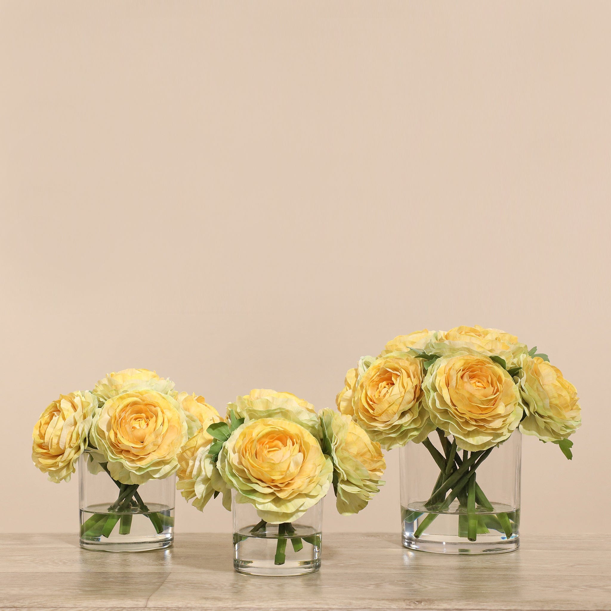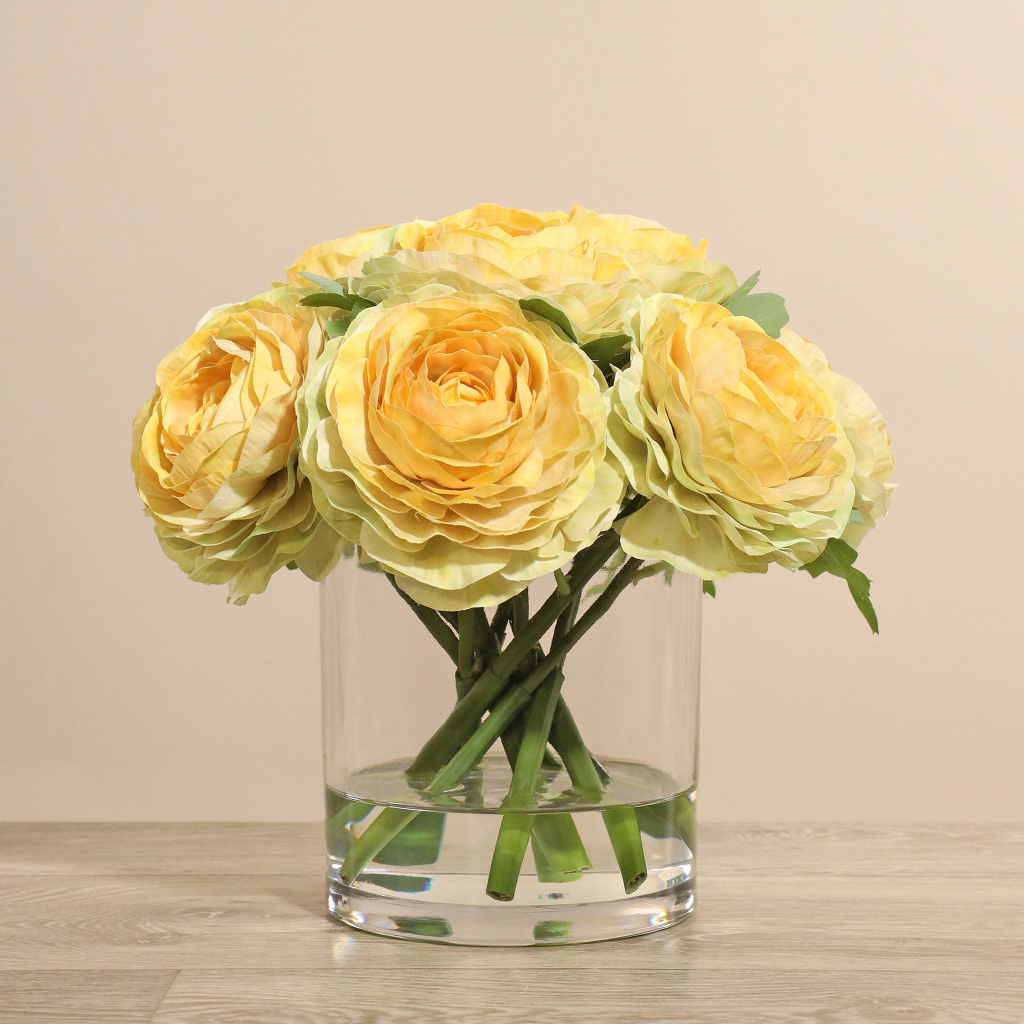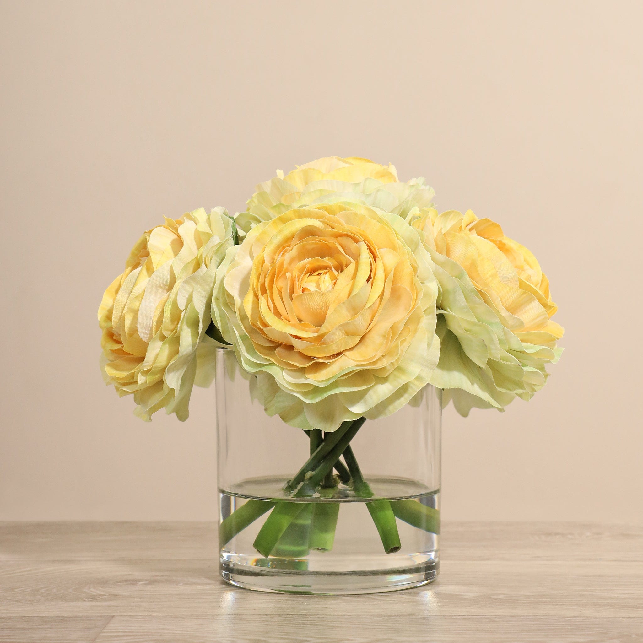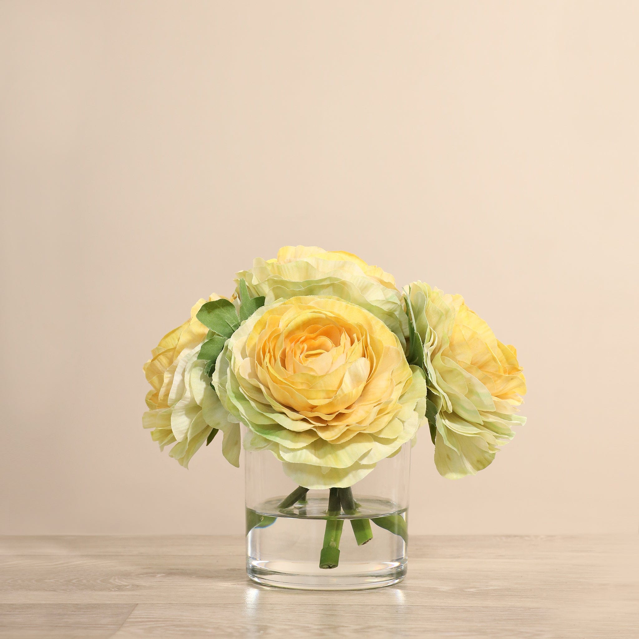رمز للجاذبية والسحر، يضفي هذا التنسيق الرائع من زهور الحوذان لمسة من البهجة على أي مساحة معيشة. تبدو هذه الزهور الصناعية واقعية بشكل مذهل، من بتلاتها الحريرية إلى سيقانها الخضراء الفاتحة. تتميز مزهريتها الزجاجية الدائرية بتصميم جميل وأنيق يدوم مع الزمن.