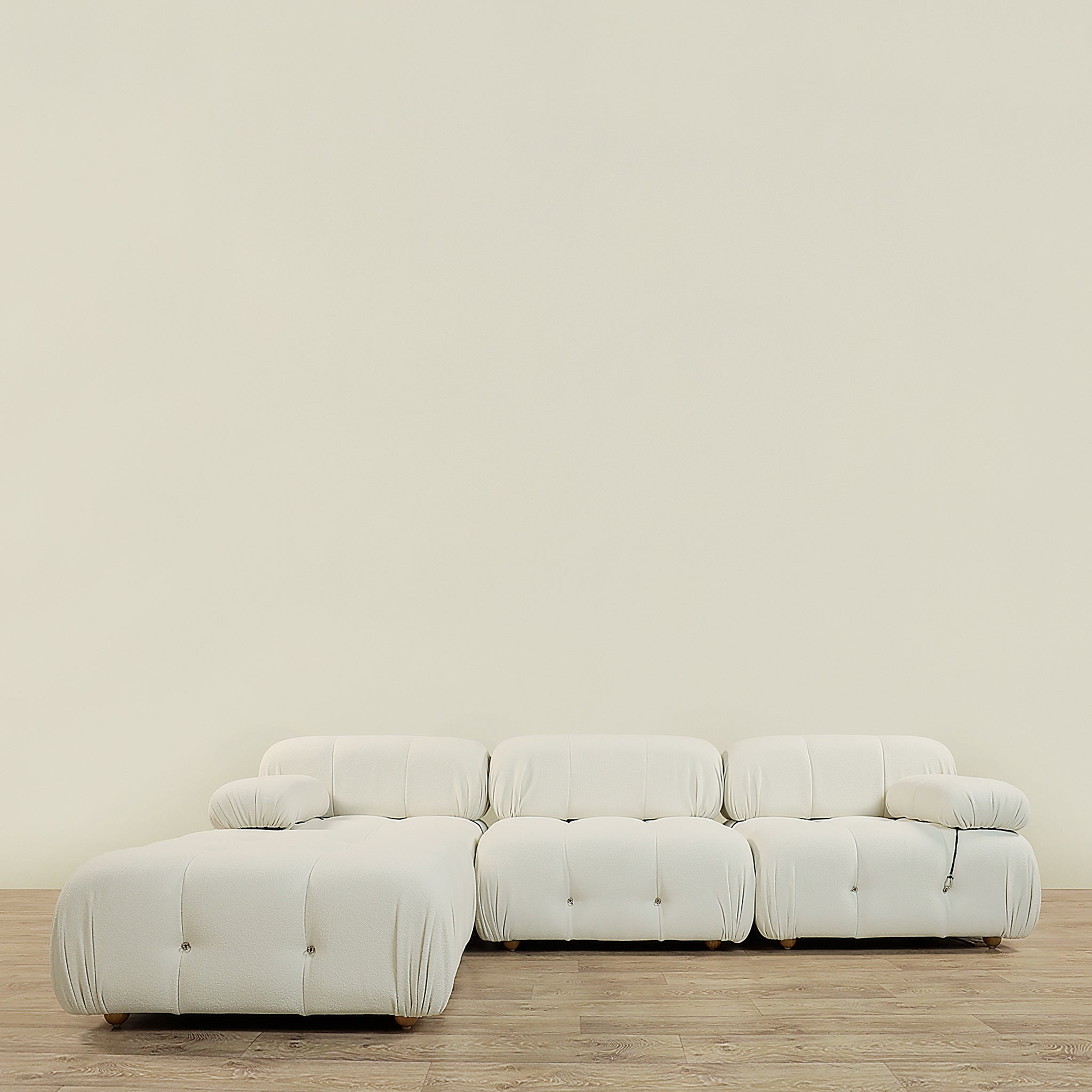 أريكة باستيا هي إعادة تصور للأريكة بتصميم عصري راقٍ. تتميز بأشكال فاخرة تضفي على المكان لمسة من الأناقة والتميز. تتم تغطية الأريكة بقماش البوكليه الرائع، مع وسائد سميكة مزينة بأزرار وتصميم مميز بالحبال لإبراز الطابع الجريء.