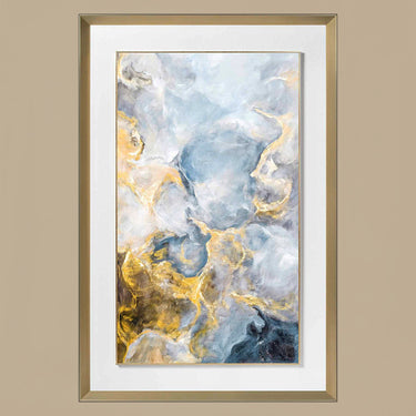 حوّل أجواء مساحتك مع هذه اللوحة المصنوعة من الأكريليك على القماش بألوان ناعمة مع شرائط من الذهب. تتميز هذه القطعة الفنية بموضوع تجريدي، لتضيف الأناقة والجاذبية إلى ديكورك.