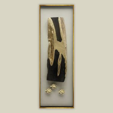 الخامة: حفر على الخشب، رقائق ذهبية، نحاس أصفر، قاعدة جلد