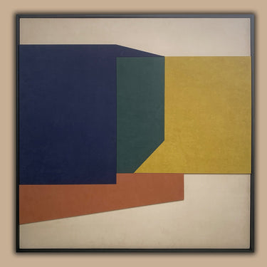 أضف نقطة محورية درامية لمساحتك مع هذا العمل الفني المصنوع من كولاج القماش، الذي يمزج بسهولة بين الألوان الهادئة، والأشكال الهندسية، والخطوط النظيفة ليخلق تجربة بصرية هادئة ومتناغمة. تضيف تقنية الكولاج طبقة ملمس دقيقة وجذابة، مما يعزز العمق والبعد في العمل. هذا القطعة العصرية تحتفل بالبساطة والتوازن، وتدعو المشاهدين إلى رحلة تأملية في الشكل والملمس.