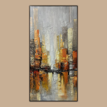 تمتاز هذه اللوحة الرائعة المصنوعة بالزيت بإطار أنيق باللون الأسود، مما يضفي تباينًا ملفتًا مع درجات الألوان في التكوين. يبرز الطابع العصري والمهارة في استخدام الألوان في هذه اللوحة الزيتية اليدوية الصنع، مما يجعلها إضافة مثالية لمختلف أنماط الديكور.