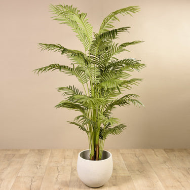 استمتع بالأجواء الرائعة التي يضفيها وجود أشجار أو نخيل على أي مساحة داخلية، دون حاجة للقلق بشأن العناية المستمرة. نخلة فوفل هذه تتميز بمظهر طبيعي للغاية، لن يشك أي من ضيوفك بكونها صناعية، وهي تصلك مجمعة وجاهزة لتزيين أي غرفة! كل ما عليك هو ثني فروع النخلة للخارج، ووضعها داخل أصيص خرساني من اختيارك.