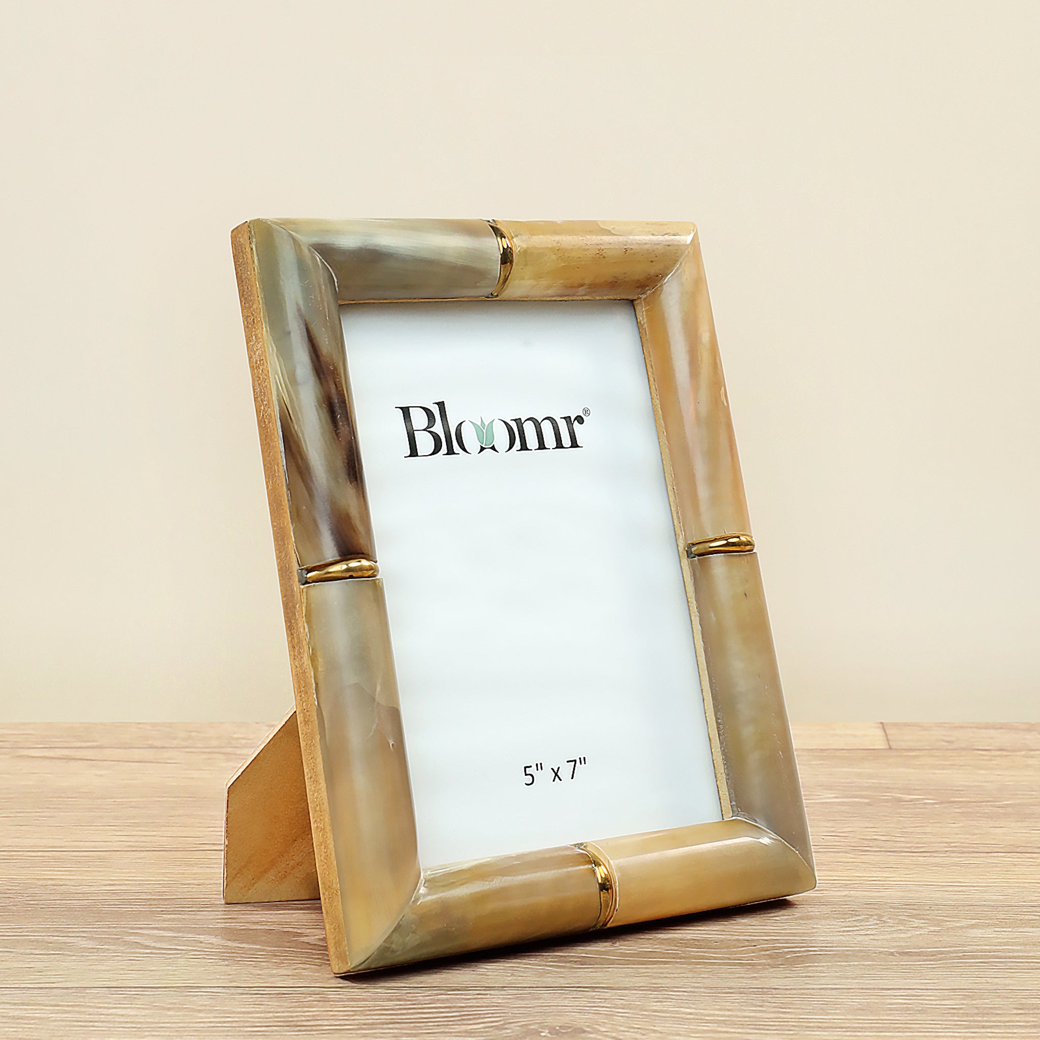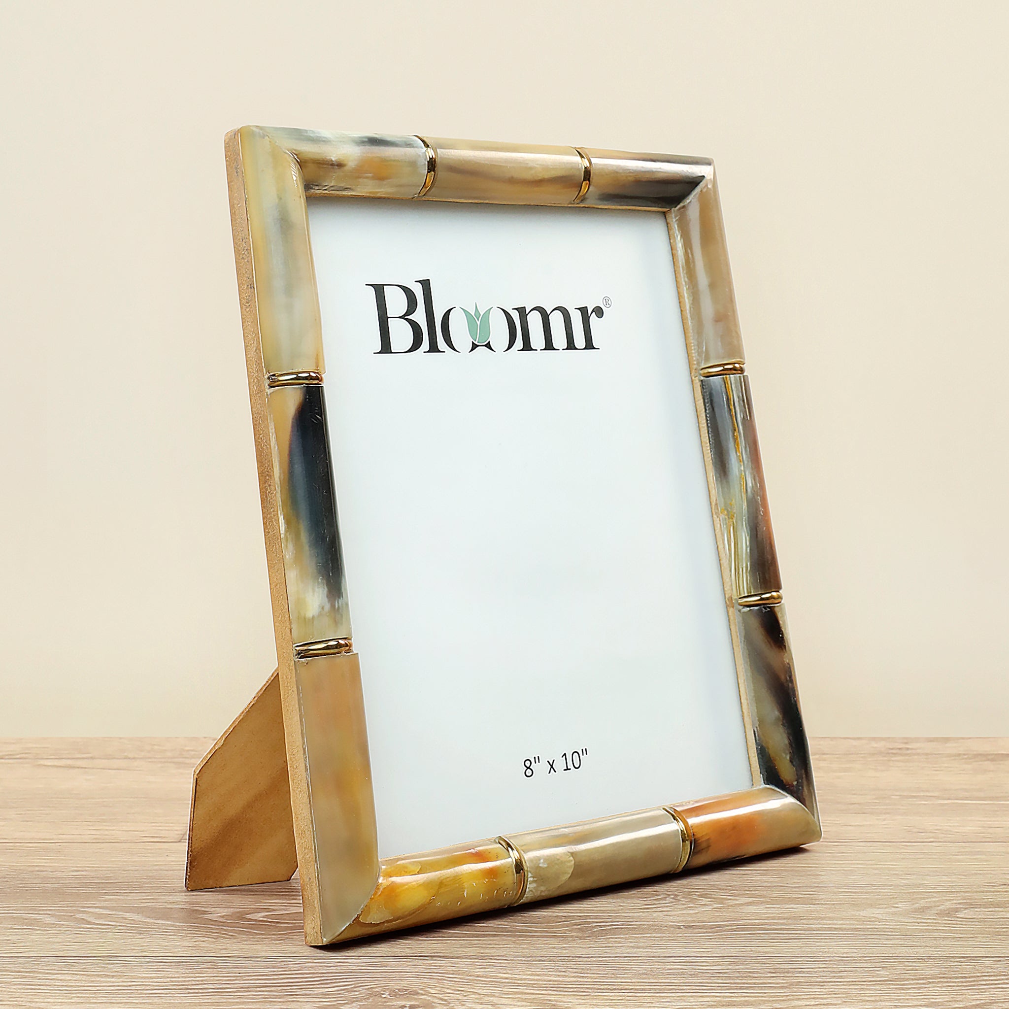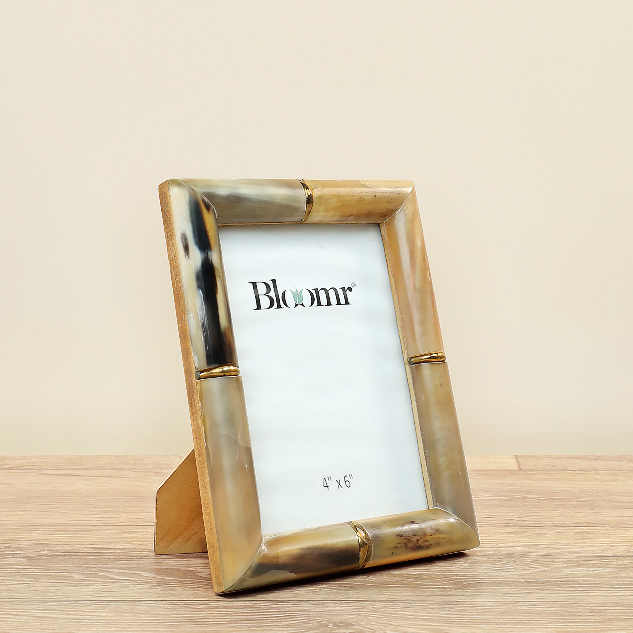 Elevate the presentation of your cherished photos with this versatile frame. It seamlessly complements many decorating styles while providing a stunning backdrop for your photographs. Boasting an horn and metal design, this photo frame ensures a perfect showcase for your favorite memories, adding an elegant touch to any space.